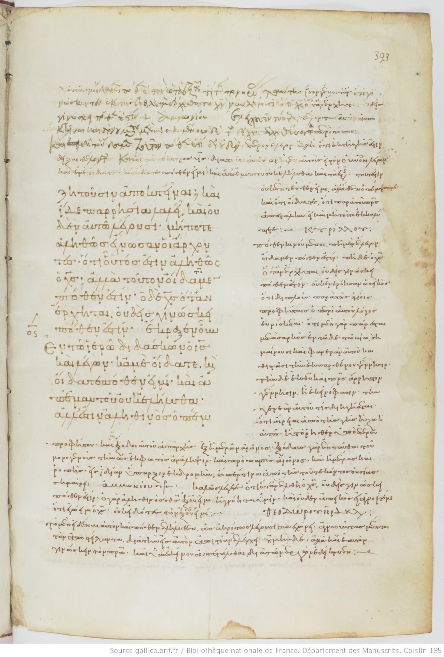 Tenth-century minuscule of the Gospels with commentary on parchment; 469 leaves, 1 column, varying number of lines per column. Images are made available by the Bilbiothèque Nationale. For recent images, please visit BNF Gallica.