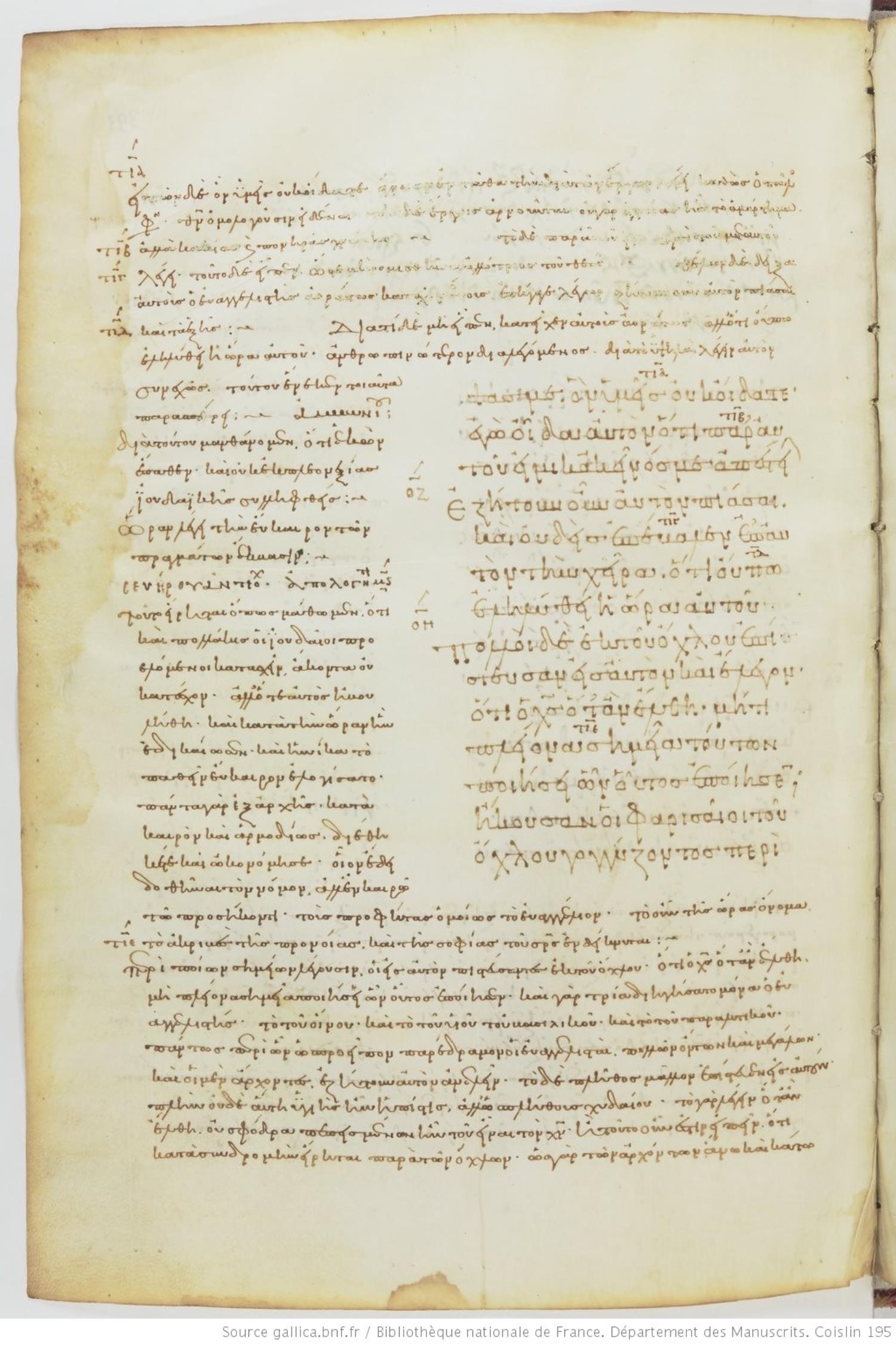 Tenth-century minuscule of the Gospels with commentary on parchment; 469 leaves, 1 column, varying number of lines per column. Images are made available by the Bilbiothèque Nationale. For recent images, please visit BNF Gallica.