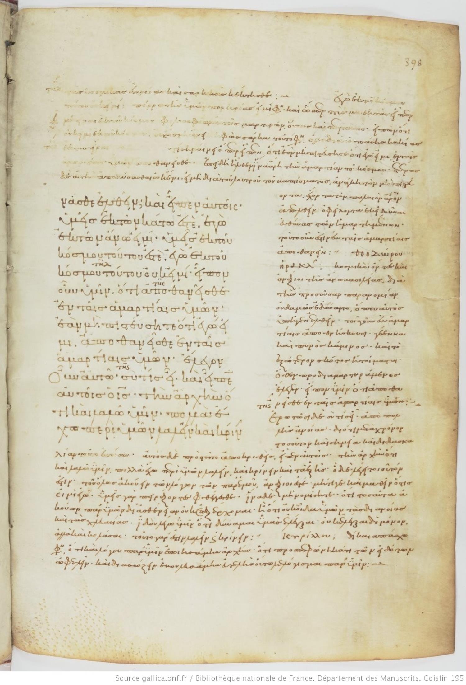 Tenth-century minuscule of the Gospels with commentary on parchment; 469 leaves, 1 column, varying number of lines per column. Images are made available by the Bilbiothèque Nationale. For recent images, please visit BNF Gallica.