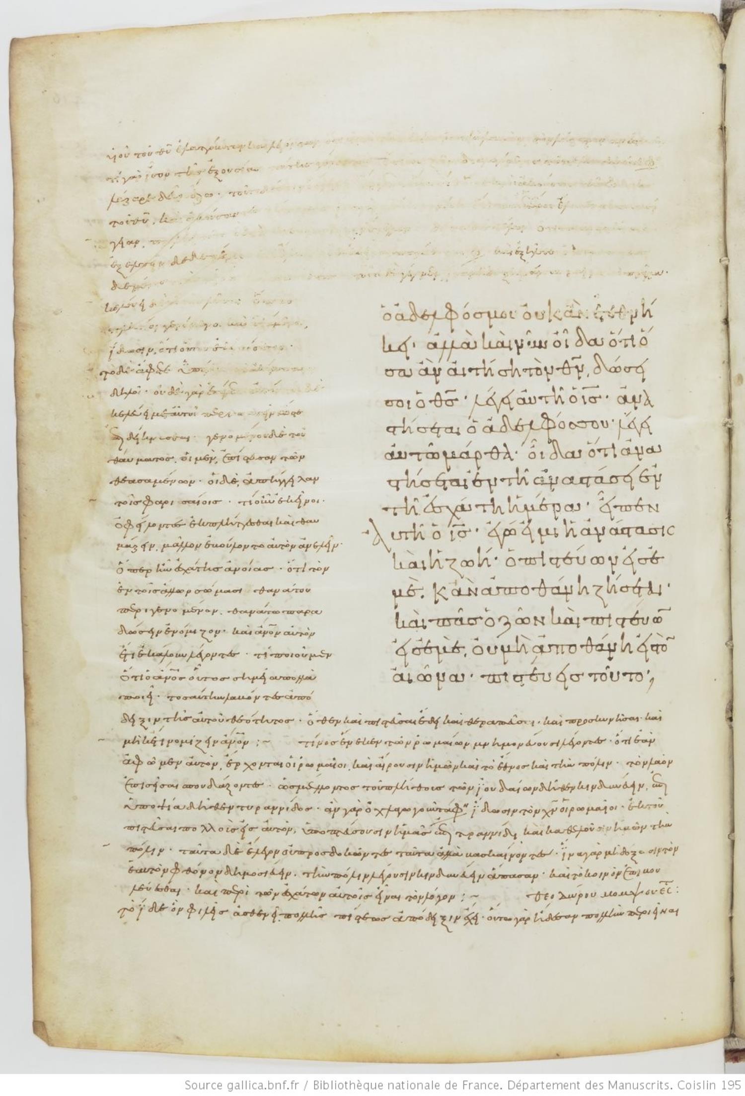 Tenth-century minuscule of the Gospels with commentary on parchment; 469 leaves, 1 column, varying number of lines per column. Images are made available by the Bilbiothèque Nationale. For recent images, please visit BNF Gallica.