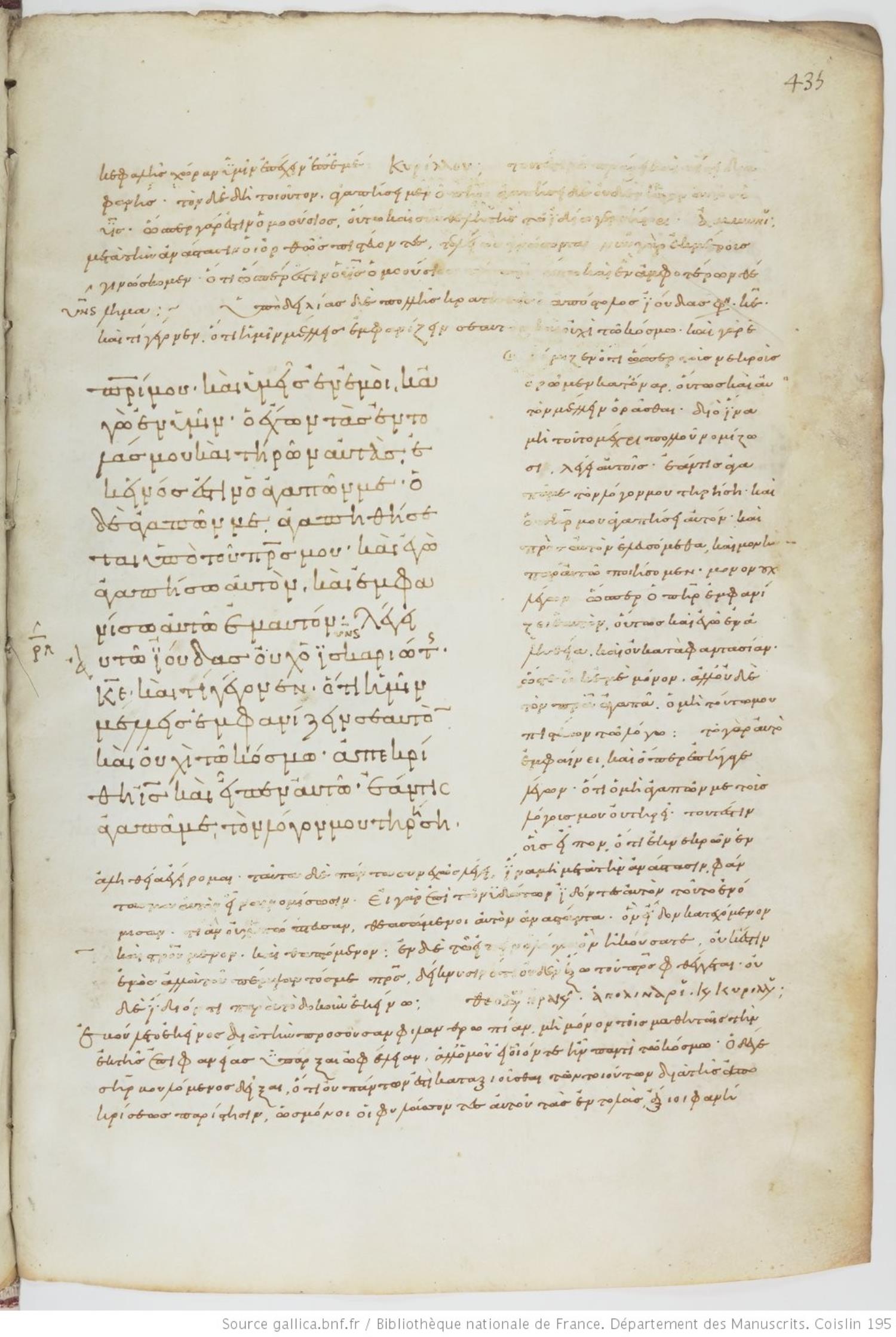 Tenth-century minuscule of the Gospels with commentary on parchment; 469 leaves, 1 column, varying number of lines per column. Images are made available by the Bilbiothèque Nationale. For recent images, please visit BNF Gallica.