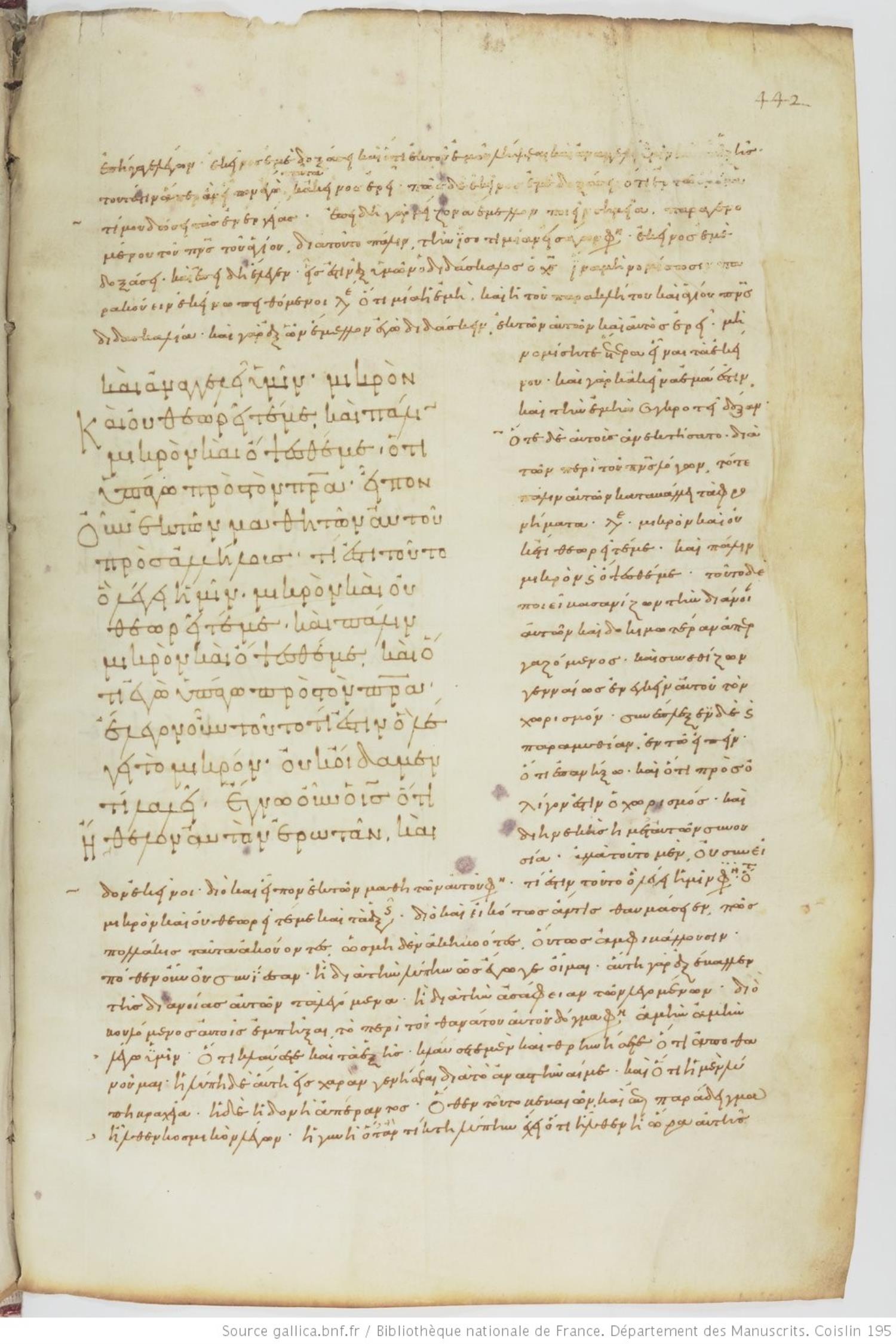 Tenth-century minuscule of the Gospels with commentary on parchment; 469 leaves, 1 column, varying number of lines per column. Images are made available by the Bilbiothèque Nationale. For recent images, please visit BNF Gallica.