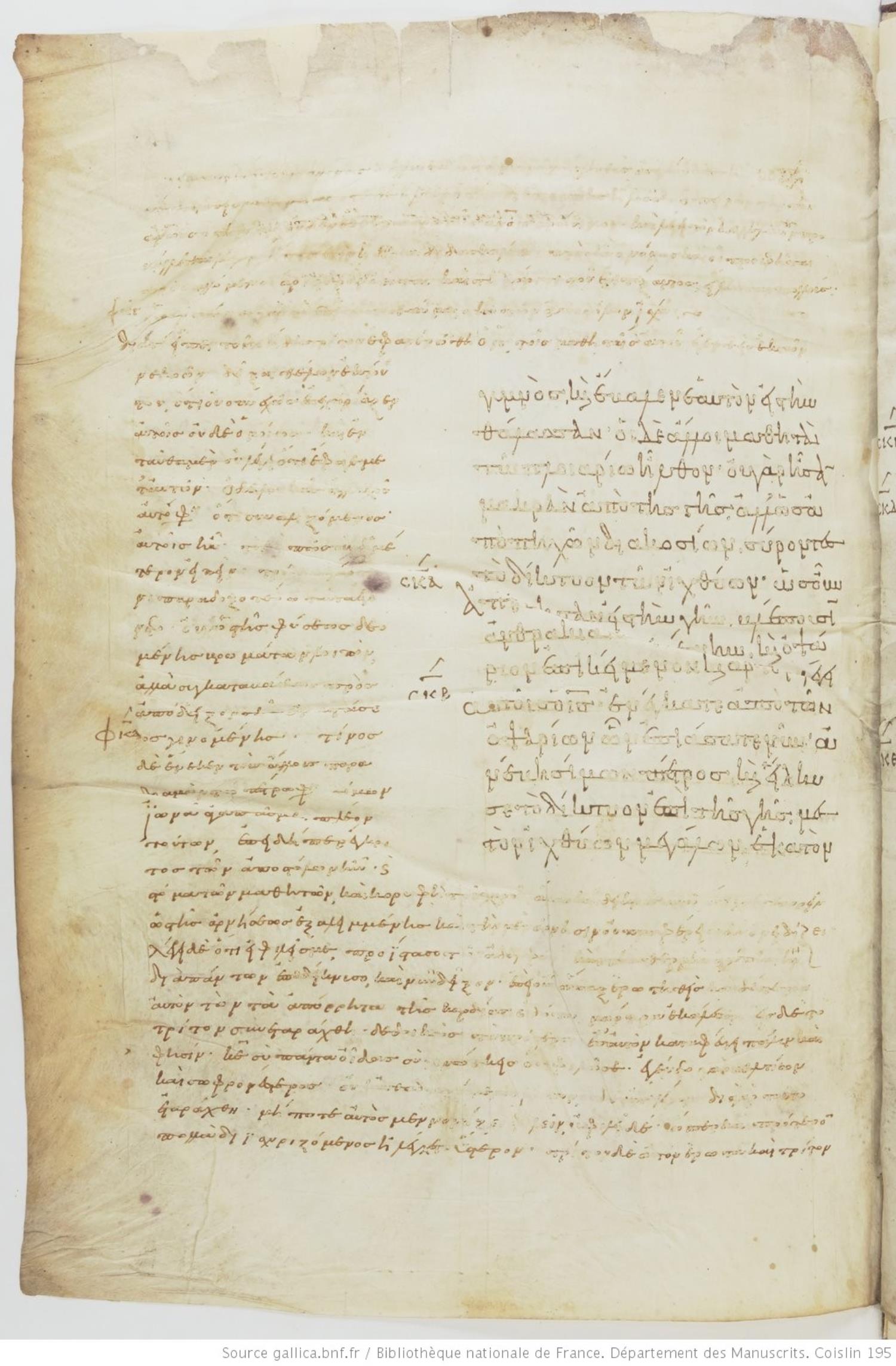 Tenth-century minuscule of the Gospels with commentary on parchment; 469 leaves, 1 column, varying number of lines per column. Images are made available by the Bilbiothèque Nationale. For recent images, please visit BNF Gallica.