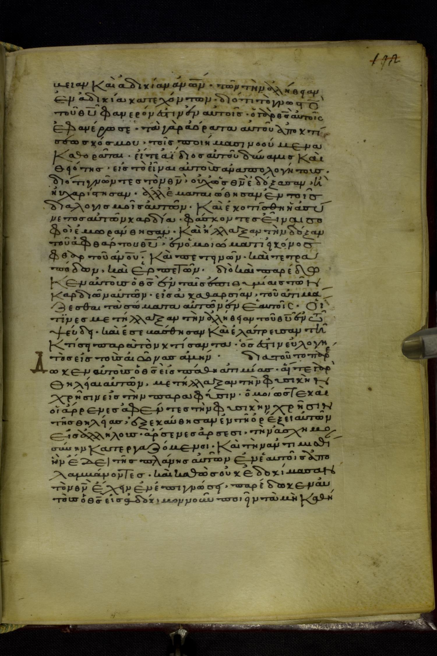 Twelfth manuscript of the Gospels, Apostolos, and Paul on parchment; 356 leaves, single column, 33 lines per column. By agreement with the owners of the manuscript, the images posted online are 100dpi. For recent digital images, visit BML Online.