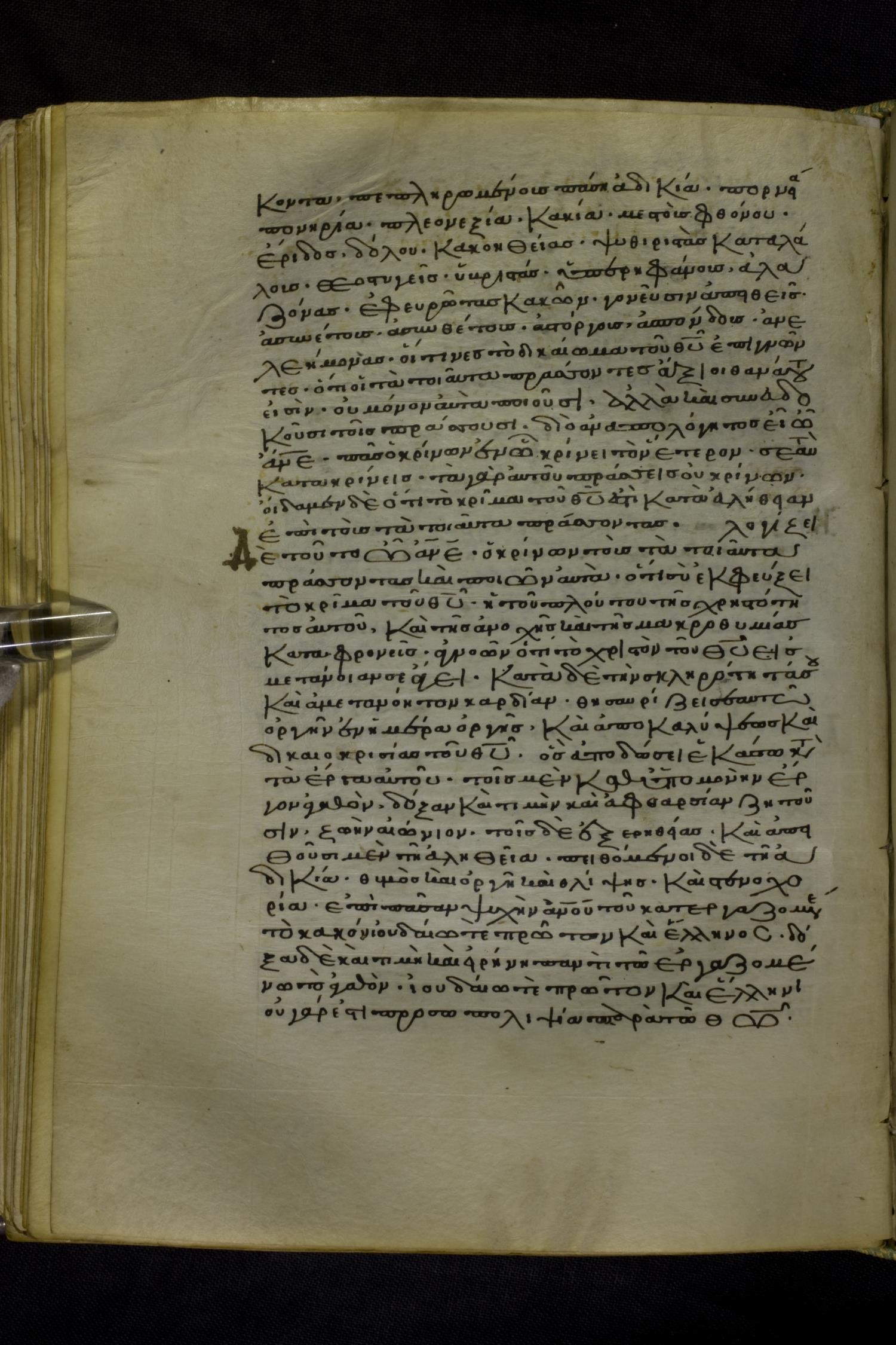 Twelfth manuscript of the Gospels, Apostolos, and Paul on parchment; 356 leaves, single column, 33 lines per column. By agreement with the owners of the manuscript, the images posted online are 100dpi. For recent digital images, visit BML Online.