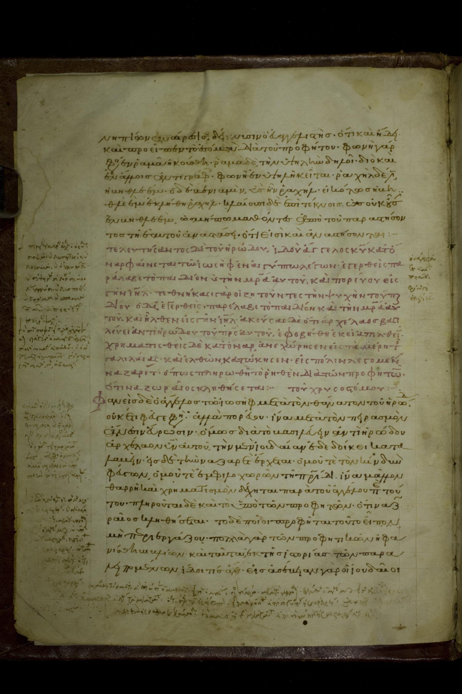 Tenth or eleventh century manuscript of the Gospels with commentary on parchment; 323 leaves, single column, 31 lines per column. By agreement with the owners of the manuscript, the images posted online are 100dpi. For recent digital images, visit BML Online.