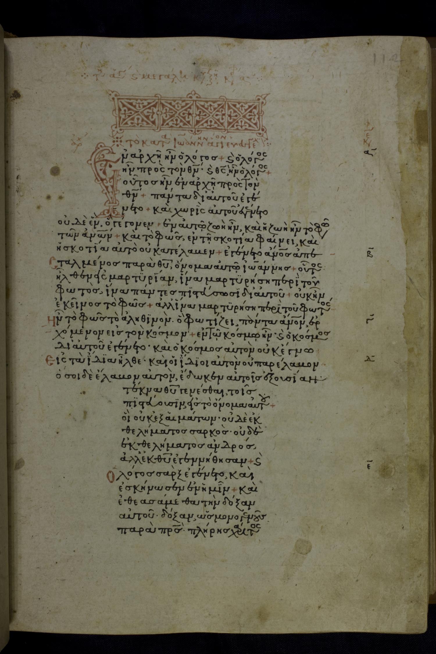 Fourteenth-century minuscule of the Gospels, Apostolos, Paul, and Revelation on paper; 349 leaves, single column, 32 lines per column. Complete New Testament dated to 1331. By agreement with the owners of the manuscript, the images posted online are 100dpi. For recent digital images, visit BML Online.