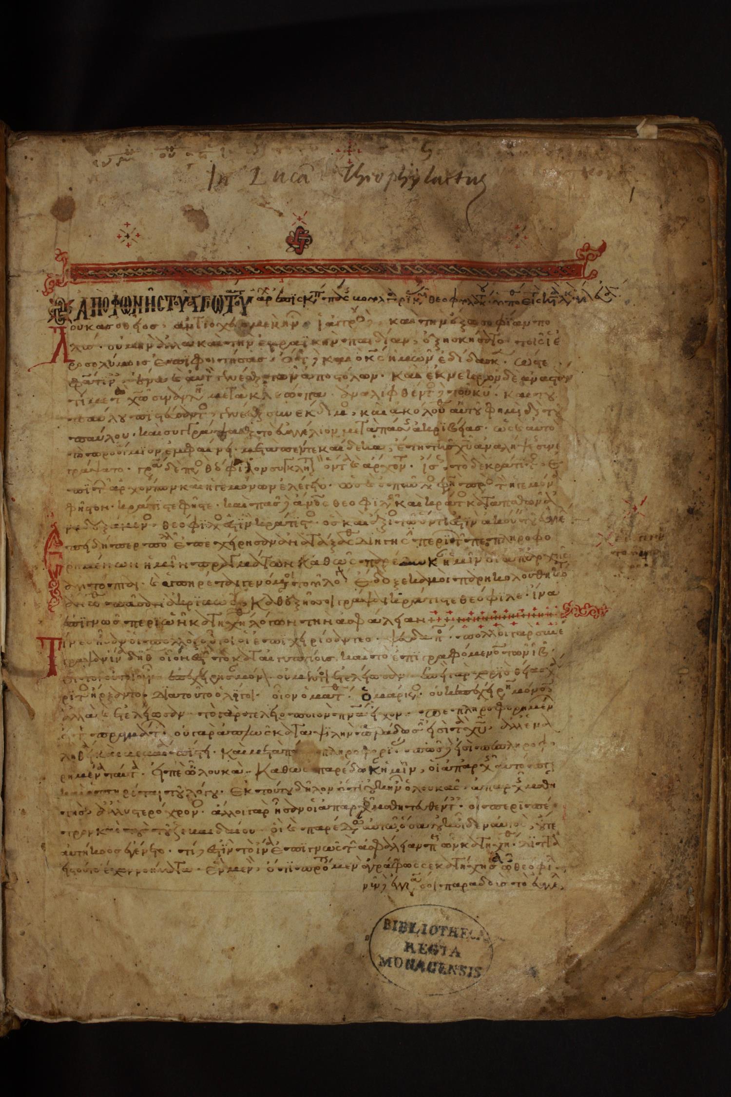 Gospels minuscule manuscript with commentary on parchment and paper; 140 leaves; single column; 31–40 lines per column. These images are made available by the Bayerische Staatsbibliothek according to Creative Commons. For recent digital images, visit Münchener Digitalisierungs Zentrum Digitale Bibliothek.