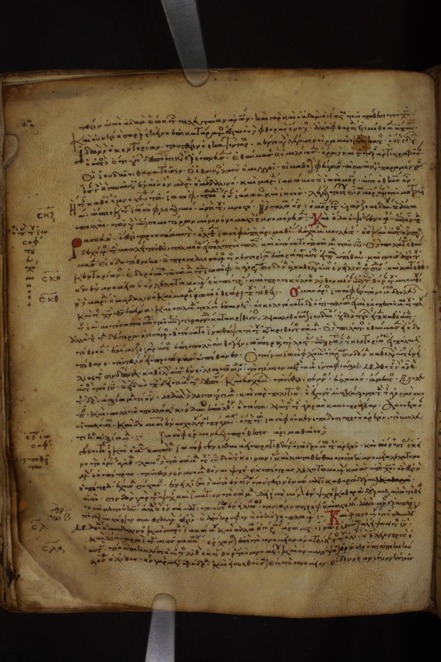 Gospels minuscule manuscript with commentary on parchment and paper; 140 leaves; single column; 31–40 lines per column. These images are made available by the Bayerische Staatsbibliothek according to Creative Commons. For recent digital images, visit Münchener Digitalisierungs Zentrum Digitale Bibliothek.