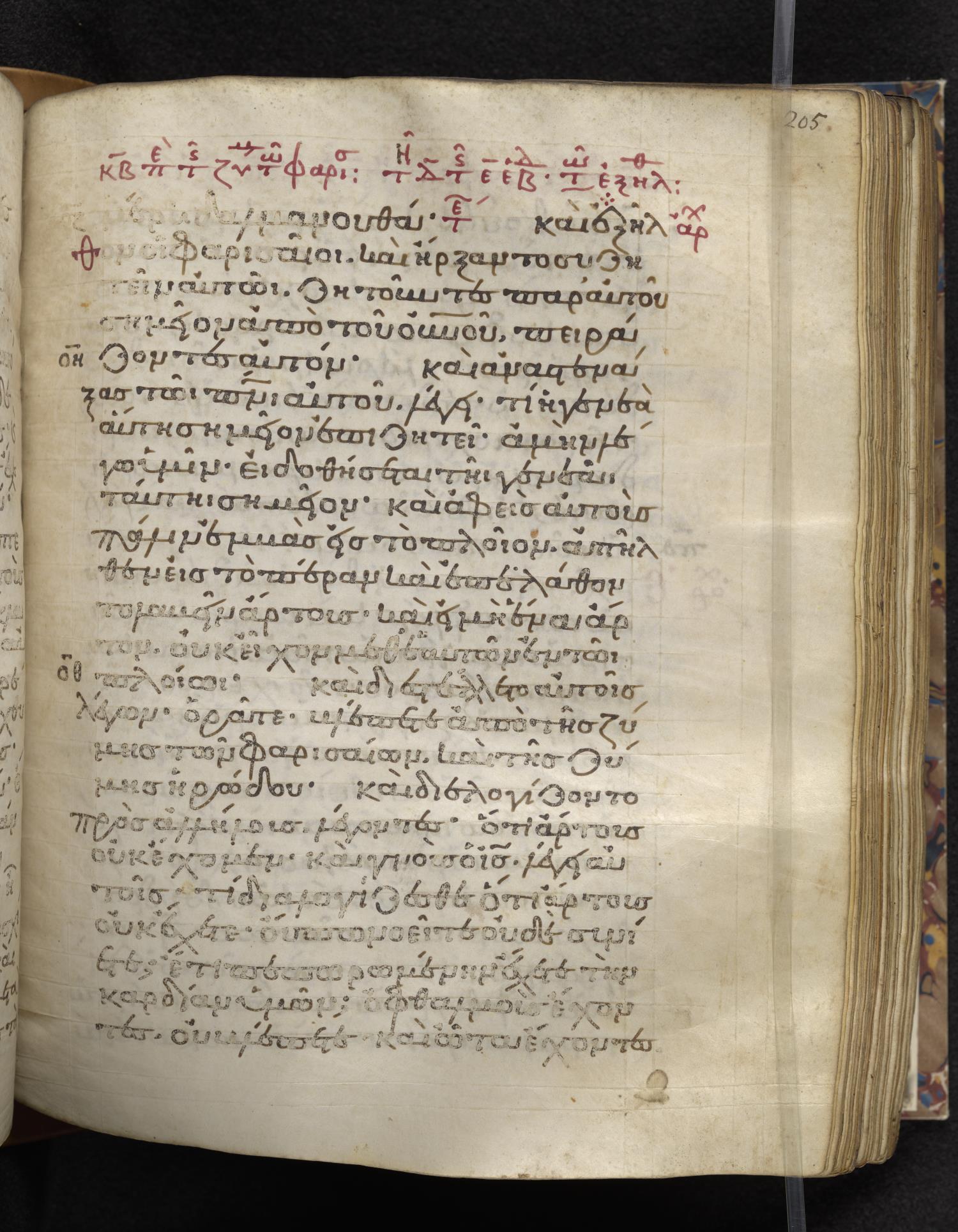 Eleventh-century minuscule of the Gospels on parchment; 310 leaves, 1 column, 22–24 lines per column. Images were taken at the Lambeth Palace Library.