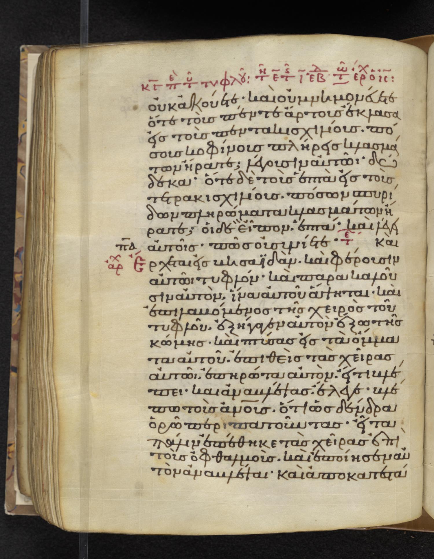 Eleventh-century minuscule of the Gospels on parchment; 310 leaves, 1 column, 22–24 lines per column. Images were taken at the Lambeth Palace Library.