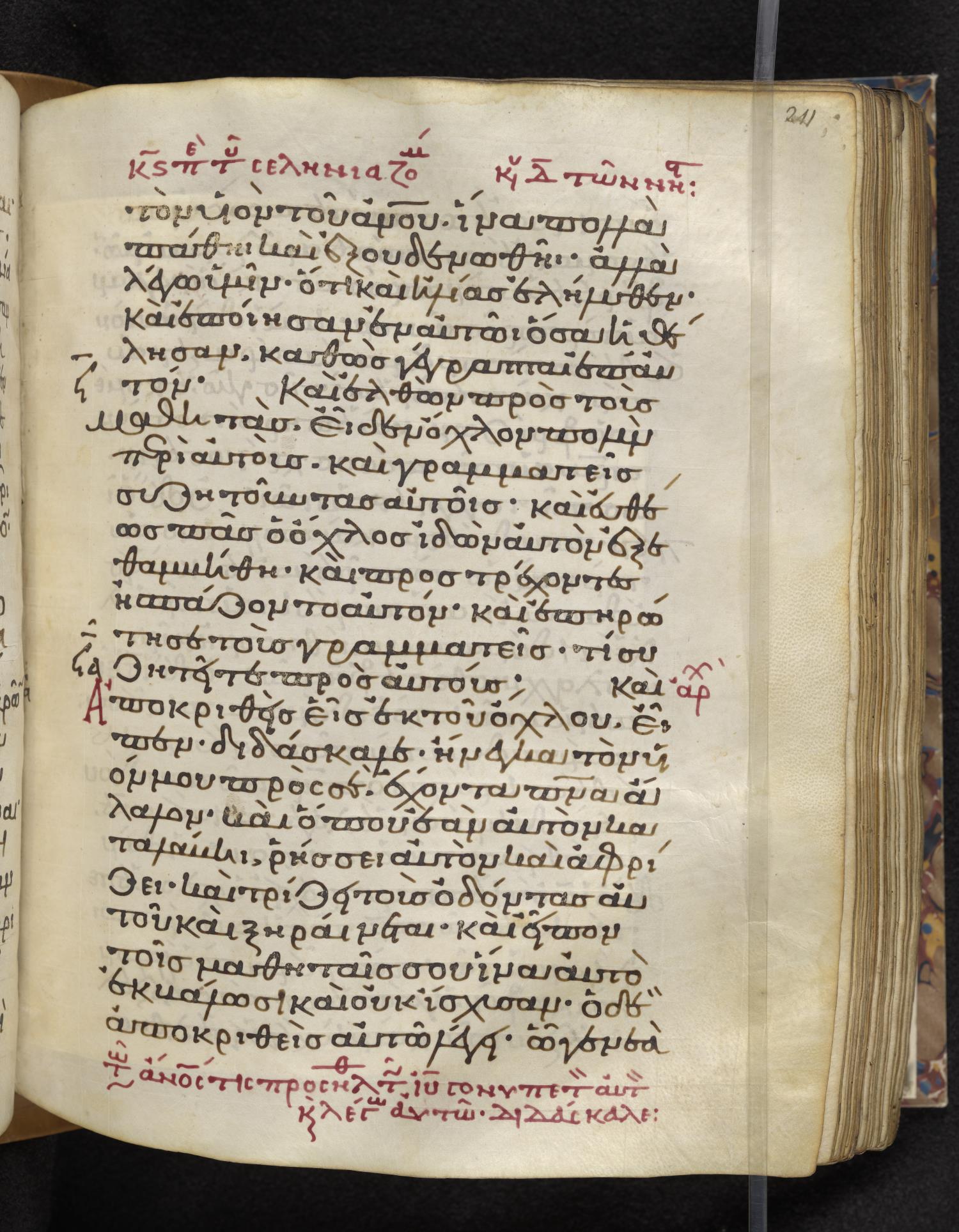 Eleventh-century minuscule of the Gospels on parchment; 310 leaves, 1 column, 22–24 lines per column. Images were taken at the Lambeth Palace Library.