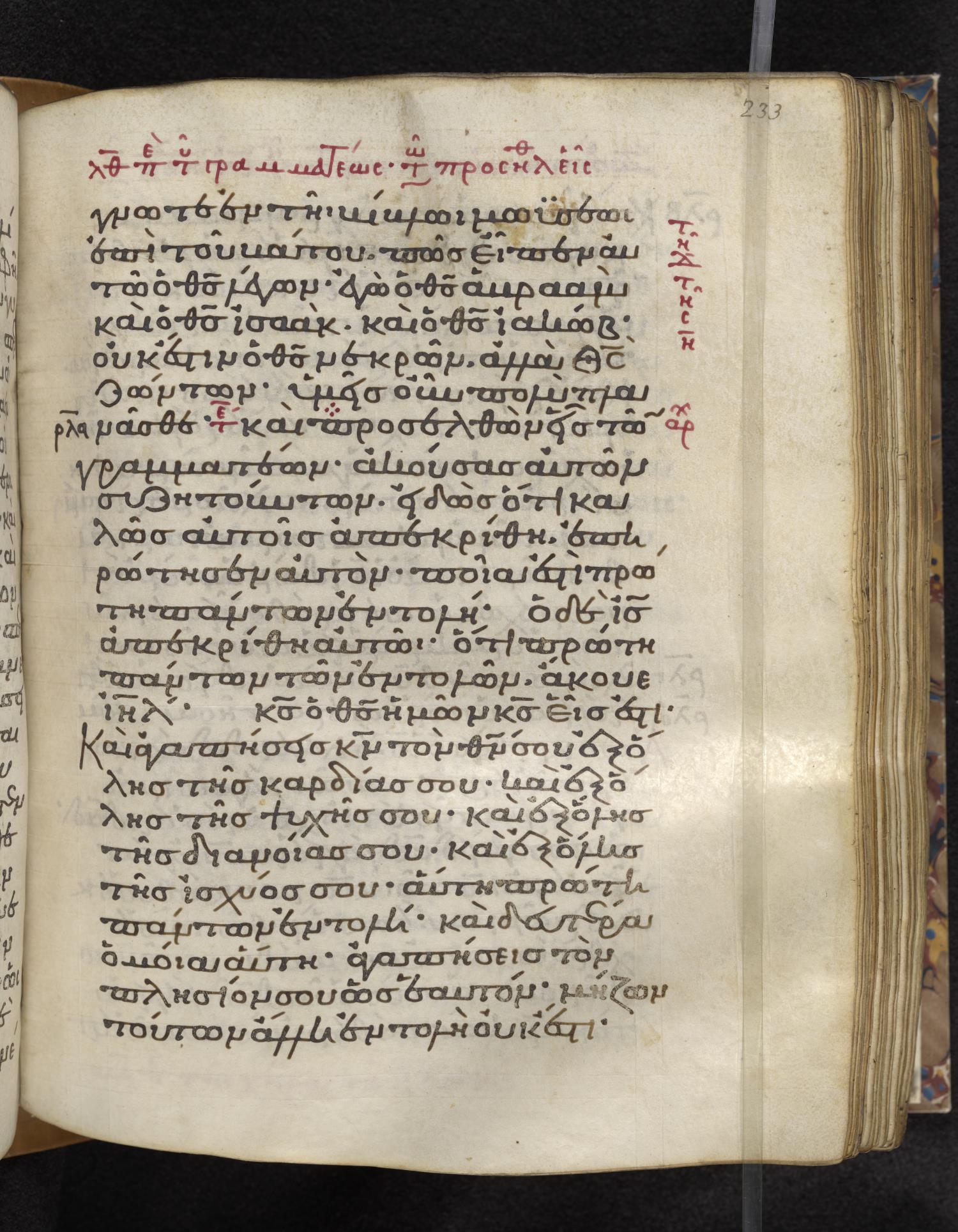 περὶ δὲ τῶν νεκρῶν ὅτι ἐγείρονται οὐκ ἀνέγνωτε ἐν τῇ βίβλῳ Μωυσέως ἐπὶ τοῦ βάτου πῶς εἶπεν αὐτῷ ὁ θεὸς λέγων Ἐγὼ ὁ θεὸς Ἀβραὰμ καὶ {ὁ} θεὸς Ἰσαὰκ καὶ {ὁ} θεὸς Ἰακώβ;