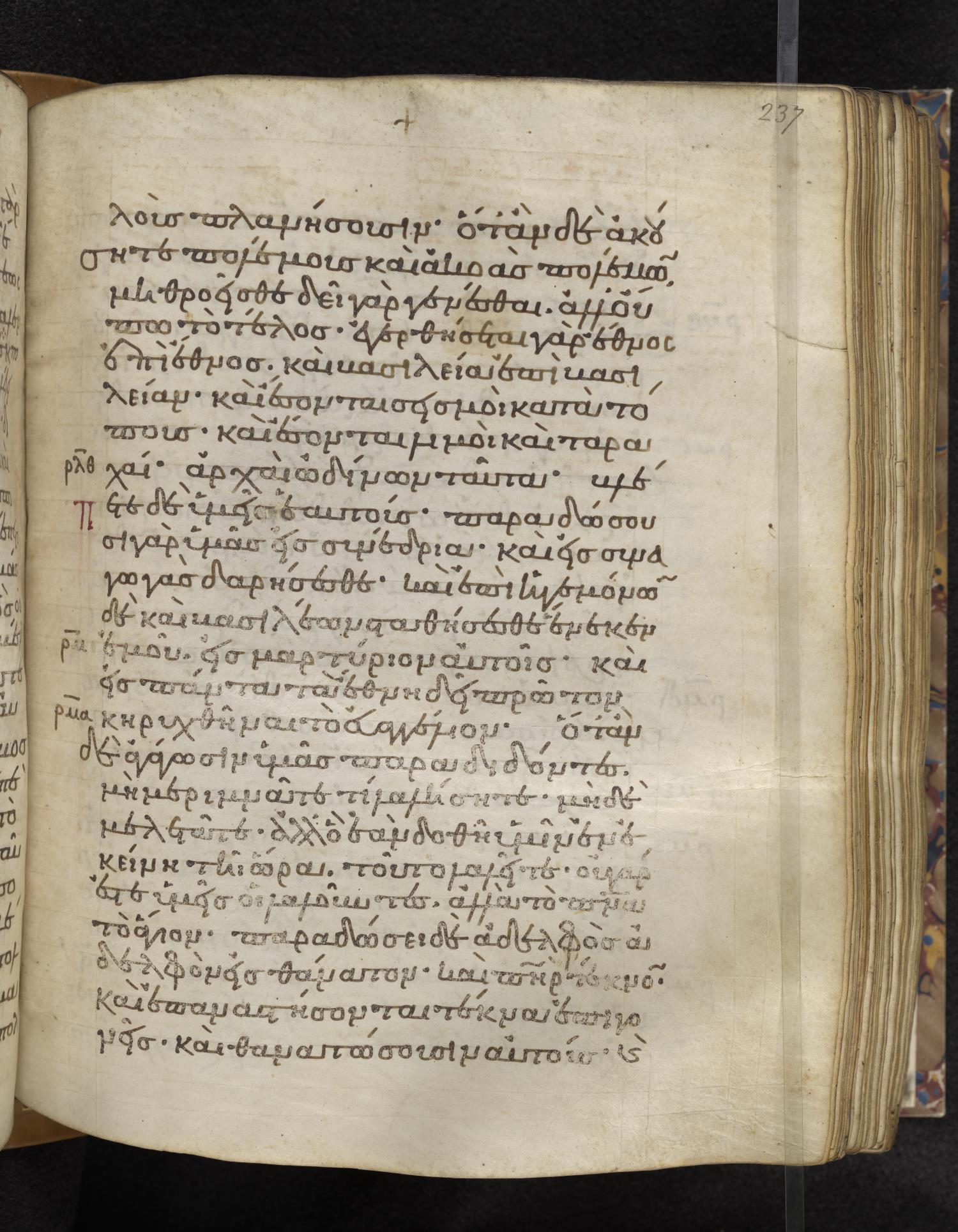 Eleventh-century minuscule of the Gospels on parchment; 310 leaves, 1 column, 22–24 lines per column. Images were taken at the Lambeth Palace Library.