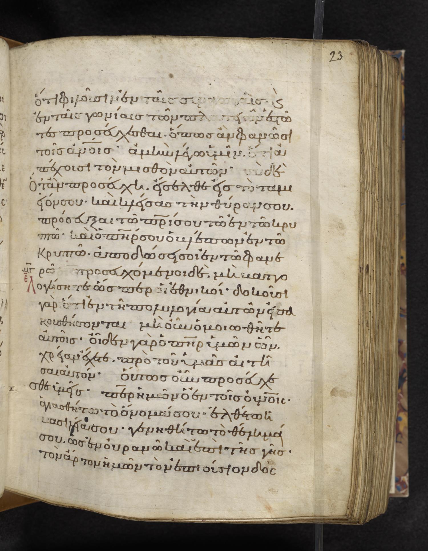 Eleventh-century minuscule of the Gospels on parchment; 310 leaves, 1 column, 22–24 lines per column. Images were taken at the Lambeth Palace Library.