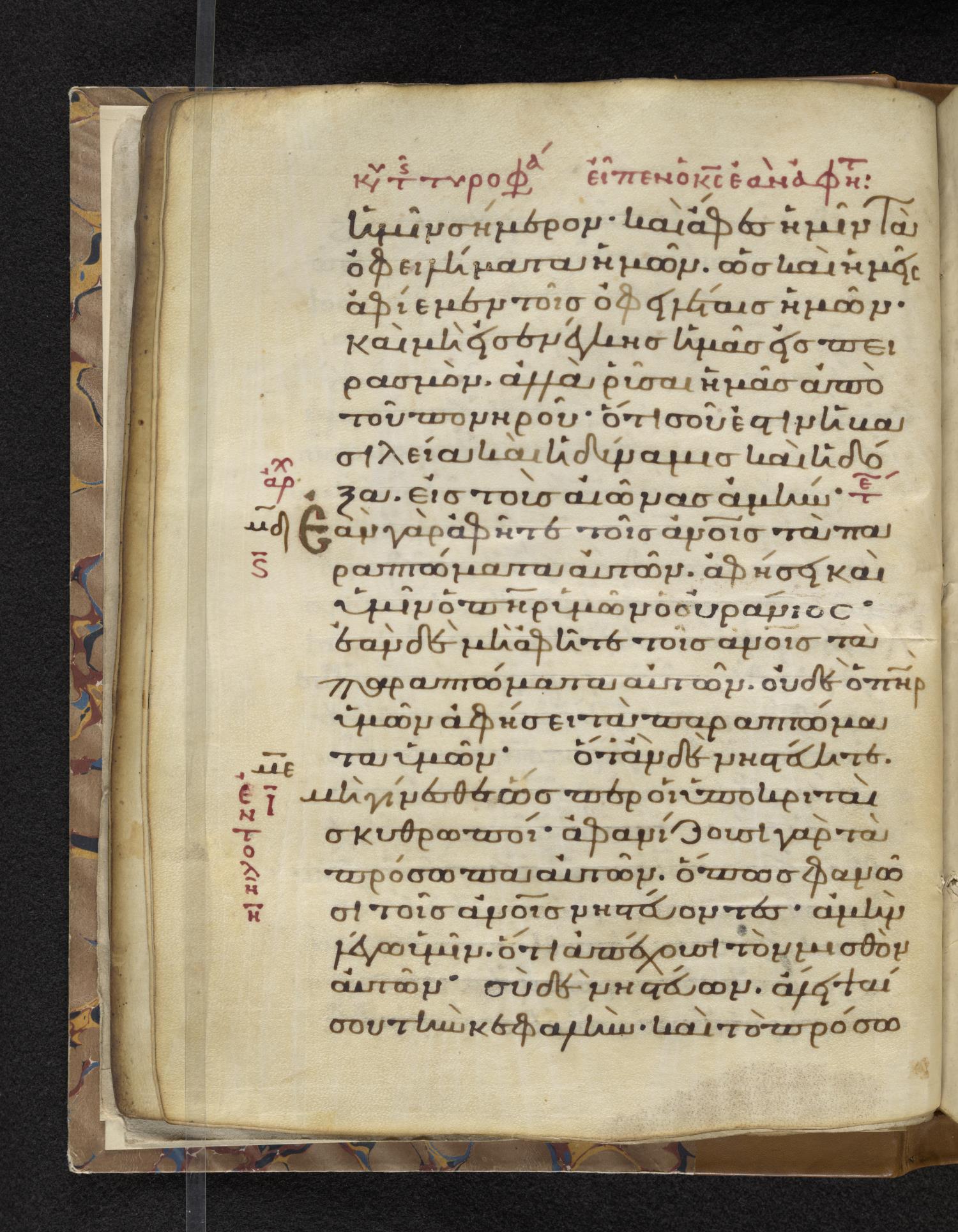 Eleventh-century minuscule of the Gospels on parchment; 310 leaves, 1 column, 22–24 lines per column. Images were taken at the Lambeth Palace Library.