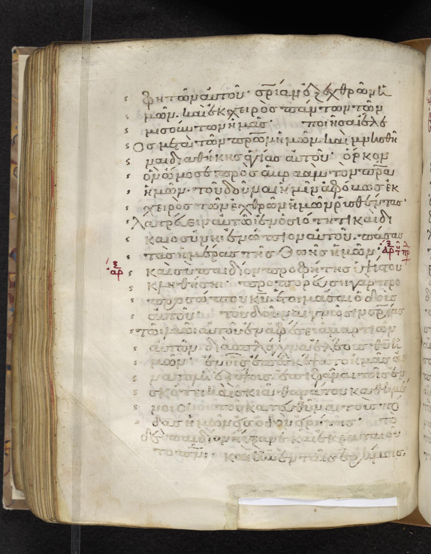 Eleventh-century minuscule of the Gospels on parchment; 310 leaves, 1 column, 22–24 lines per column. Images were taken at the Lambeth Palace Library.