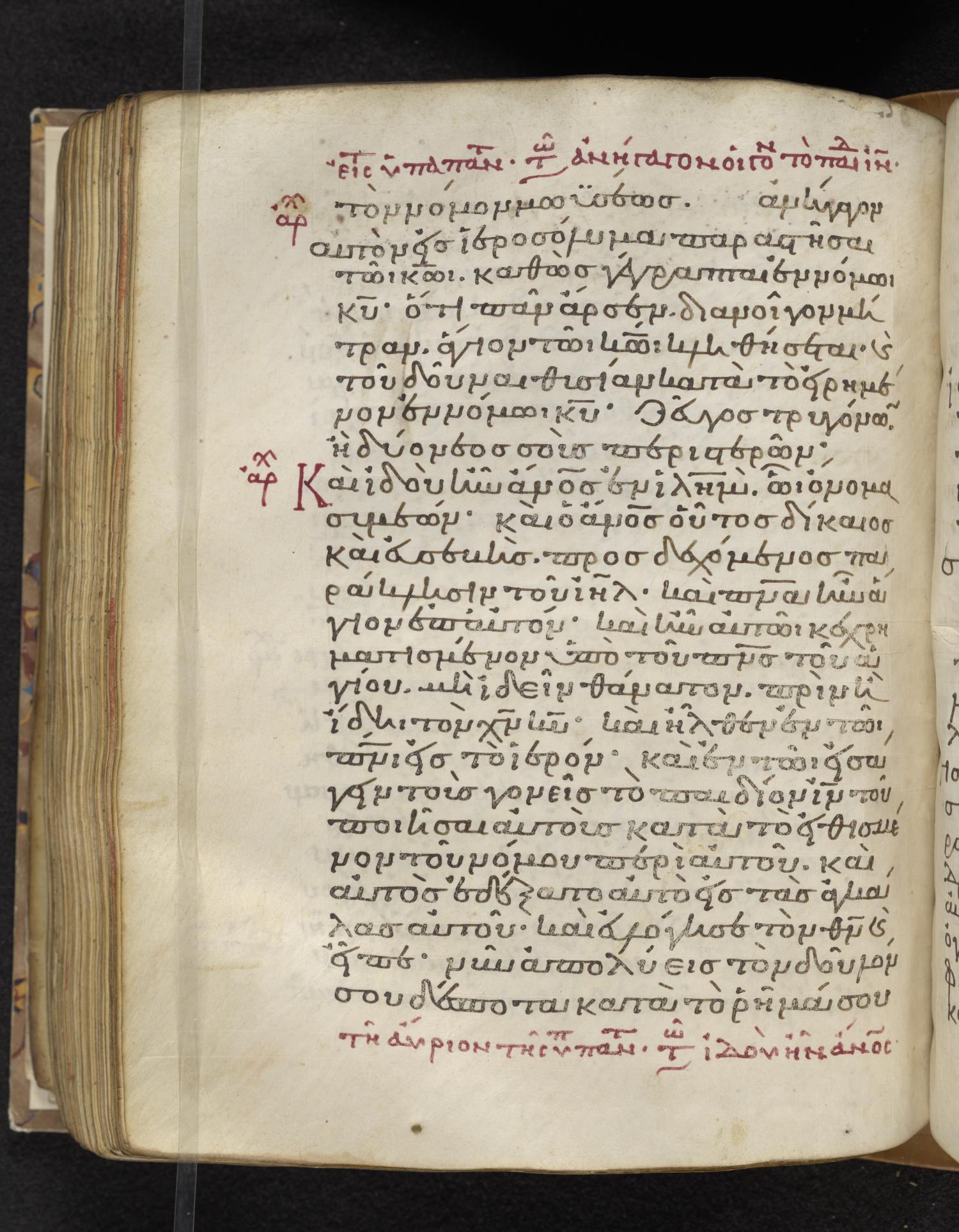 Eleventh-century minuscule of the Gospels on parchment; 310 leaves, 1 column, 22–24 lines per column. Images were taken at the Lambeth Palace Library.