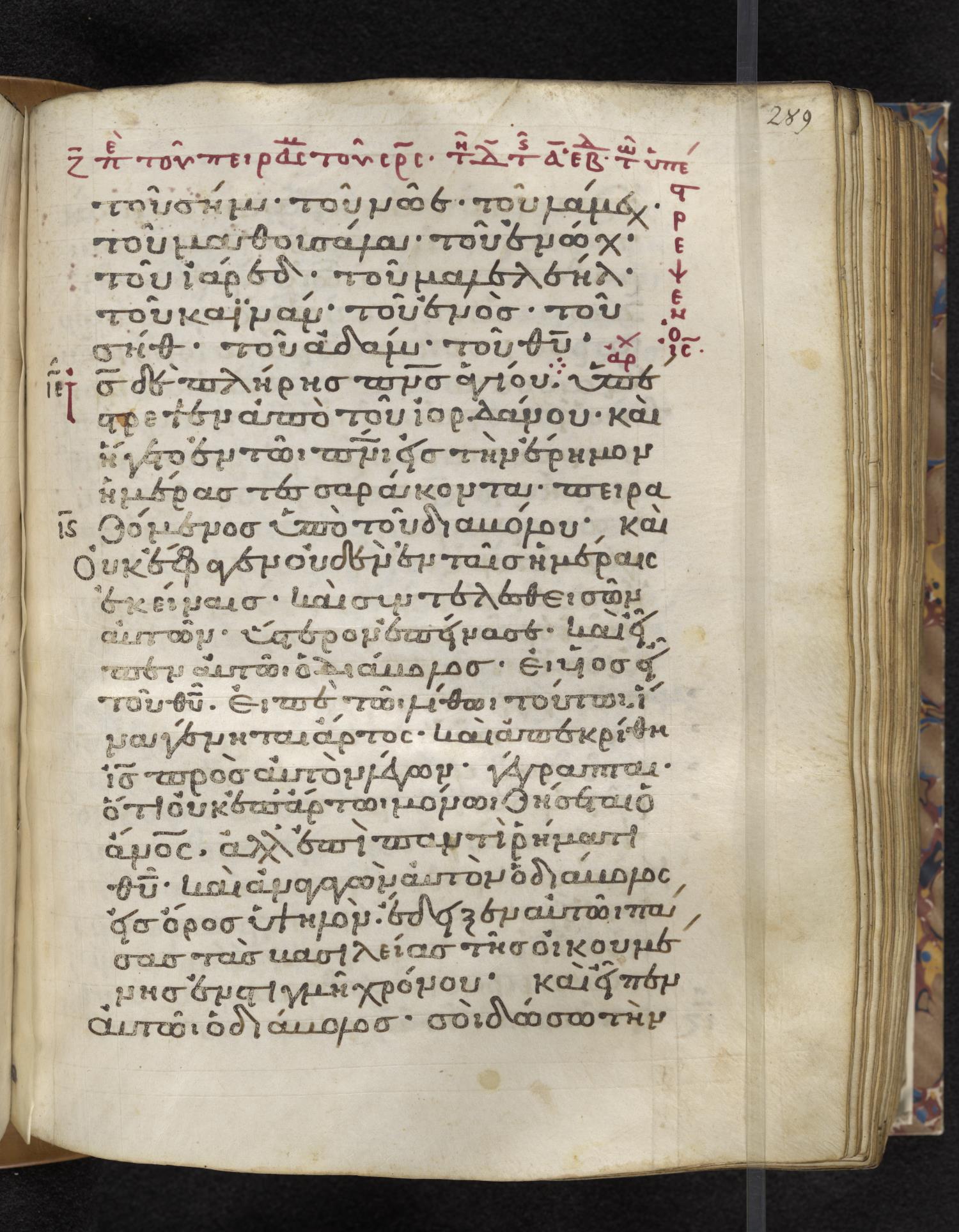 Eleventh-century minuscule of the Gospels on parchment; 310 leaves, 1 column, 22–24 lines per column. Images were taken at the Lambeth Palace Library.