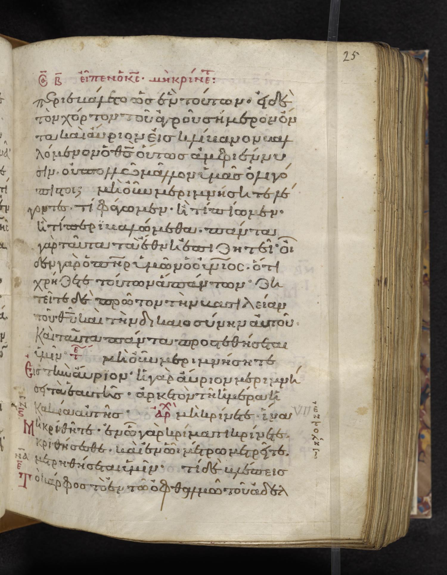 Eleventh-century minuscule of the Gospels on parchment; 310 leaves, 1 column, 22–24 lines per column. Images were taken at the Lambeth Palace Library.