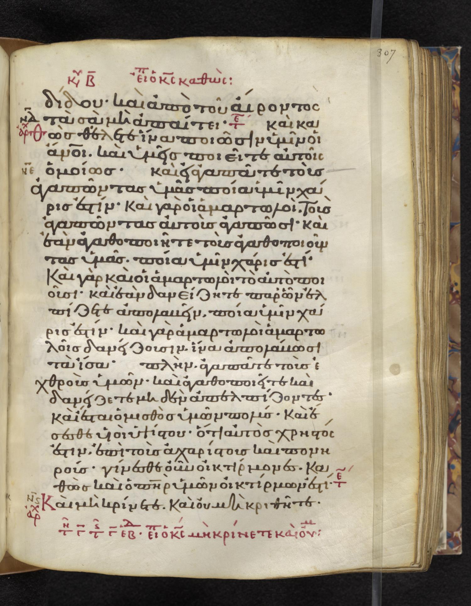 Eleventh-century minuscule of the Gospels on parchment; 310 leaves, 1 column, 22–24 lines per column. Images were taken at the Lambeth Palace Library.