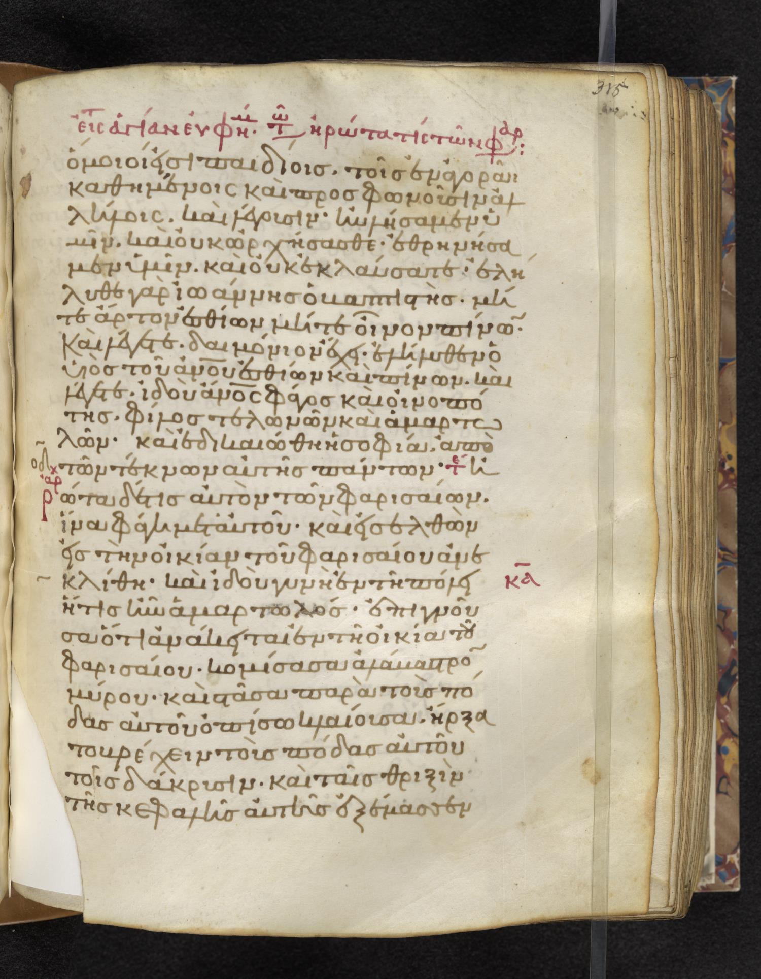 Eleventh-century minuscule of the Gospels on parchment; 310 leaves, 1 column, 22–24 lines per column. Images were taken at the Lambeth Palace Library.
