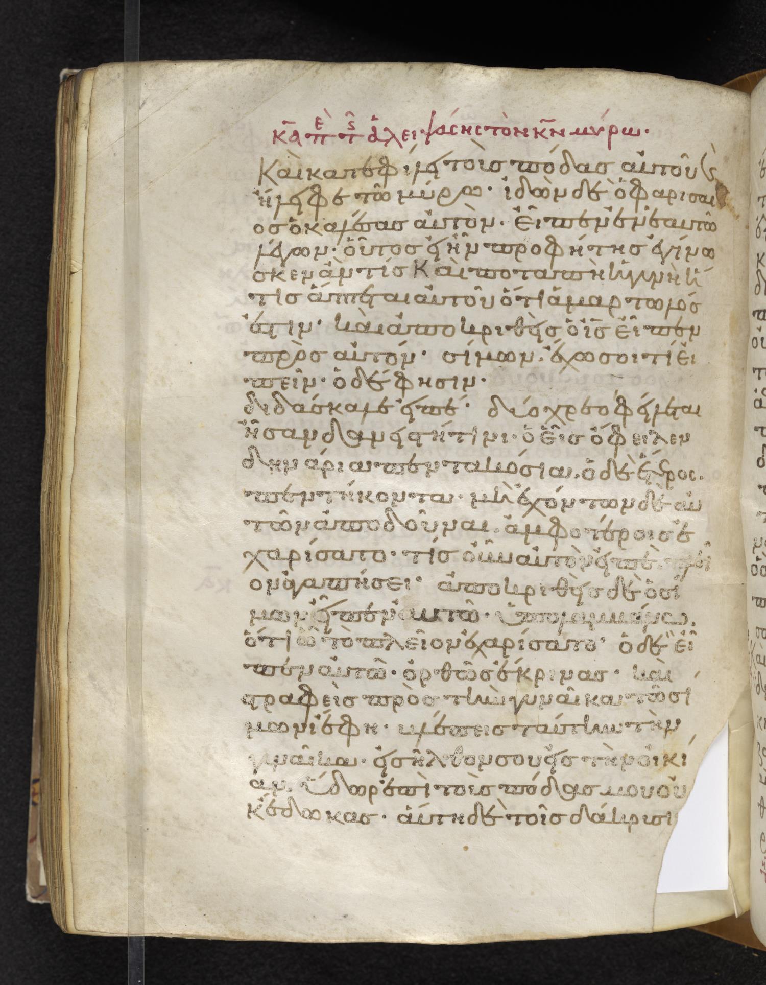 Eleventh-century minuscule of the Gospels on parchment; 310 leaves, 1 column, 22–24 lines per column. Images were taken at the Lambeth Palace Library.