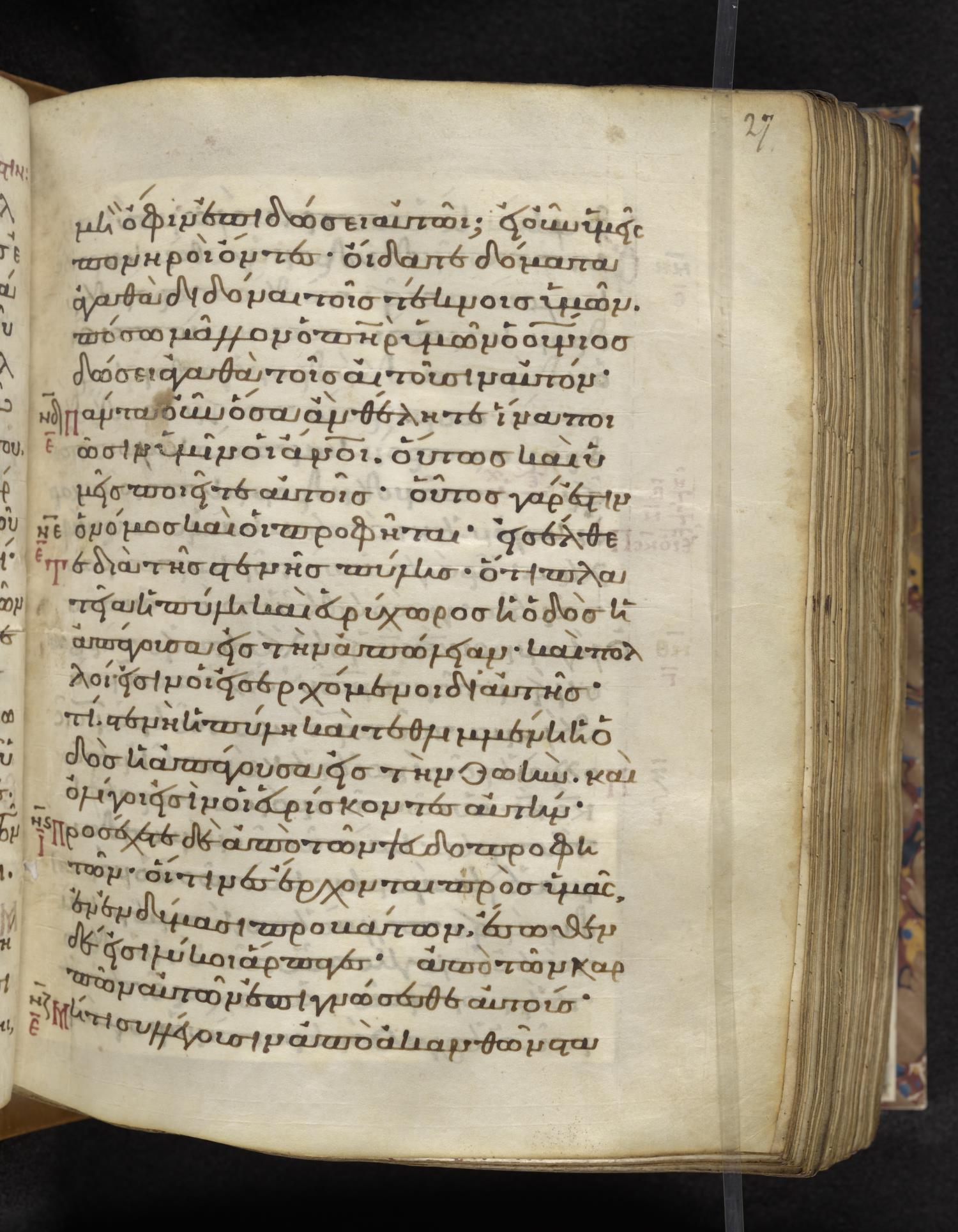 Eleventh-century minuscule of the Gospels on parchment; 310 leaves, 1 column, 22–24 lines per column. Images were taken at the Lambeth Palace Library.