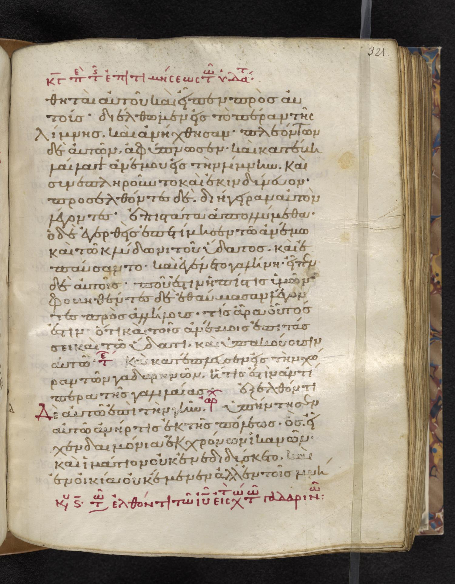 Eleventh-century minuscule of the Gospels on parchment; 310 leaves, 1 column, 22–24 lines per column. Images were taken at the Lambeth Palace Library.