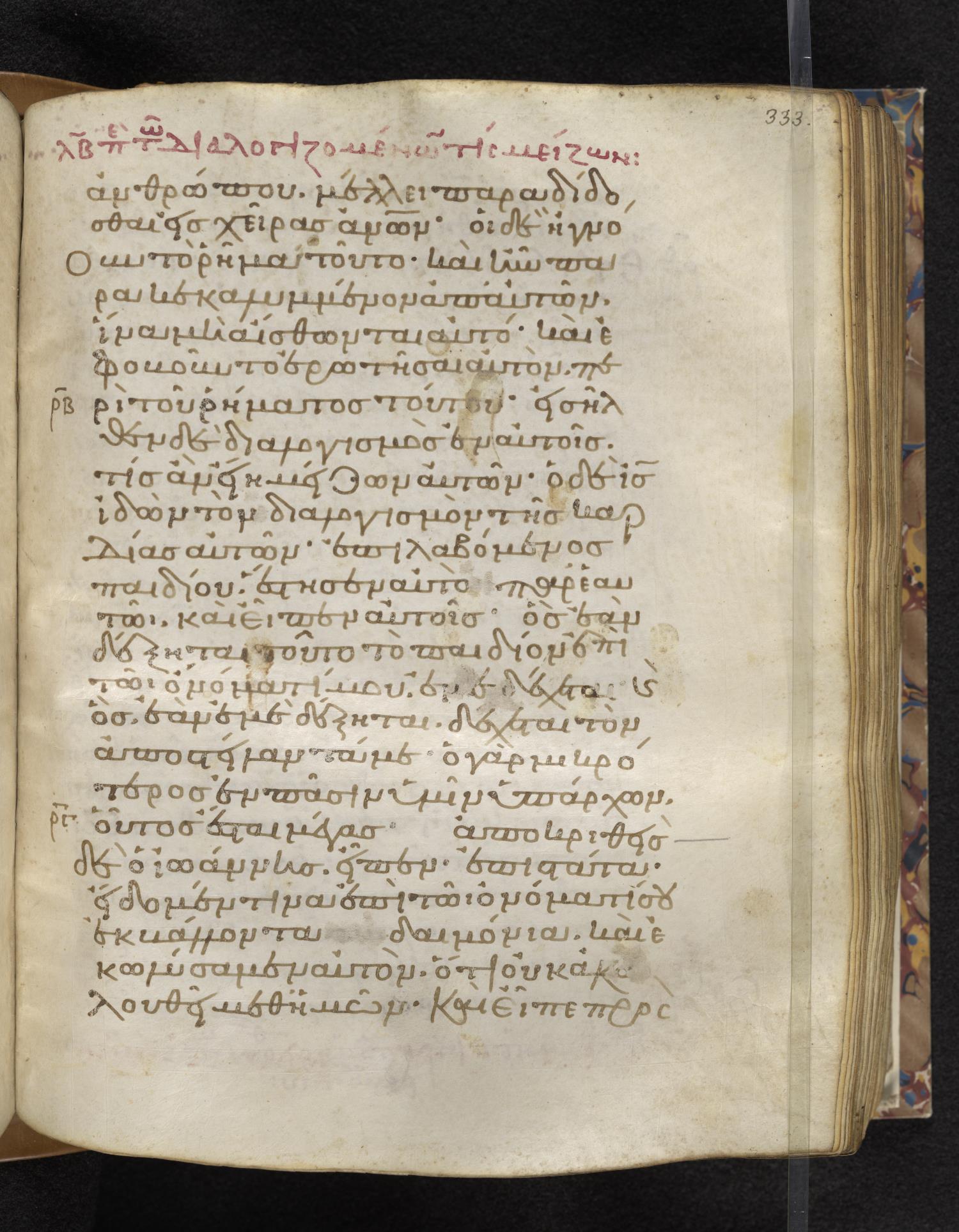 Eleventh-century minuscule of the Gospels on parchment; 310 leaves, 1 column, 22–24 lines per column. Images were taken at the Lambeth Palace Library.