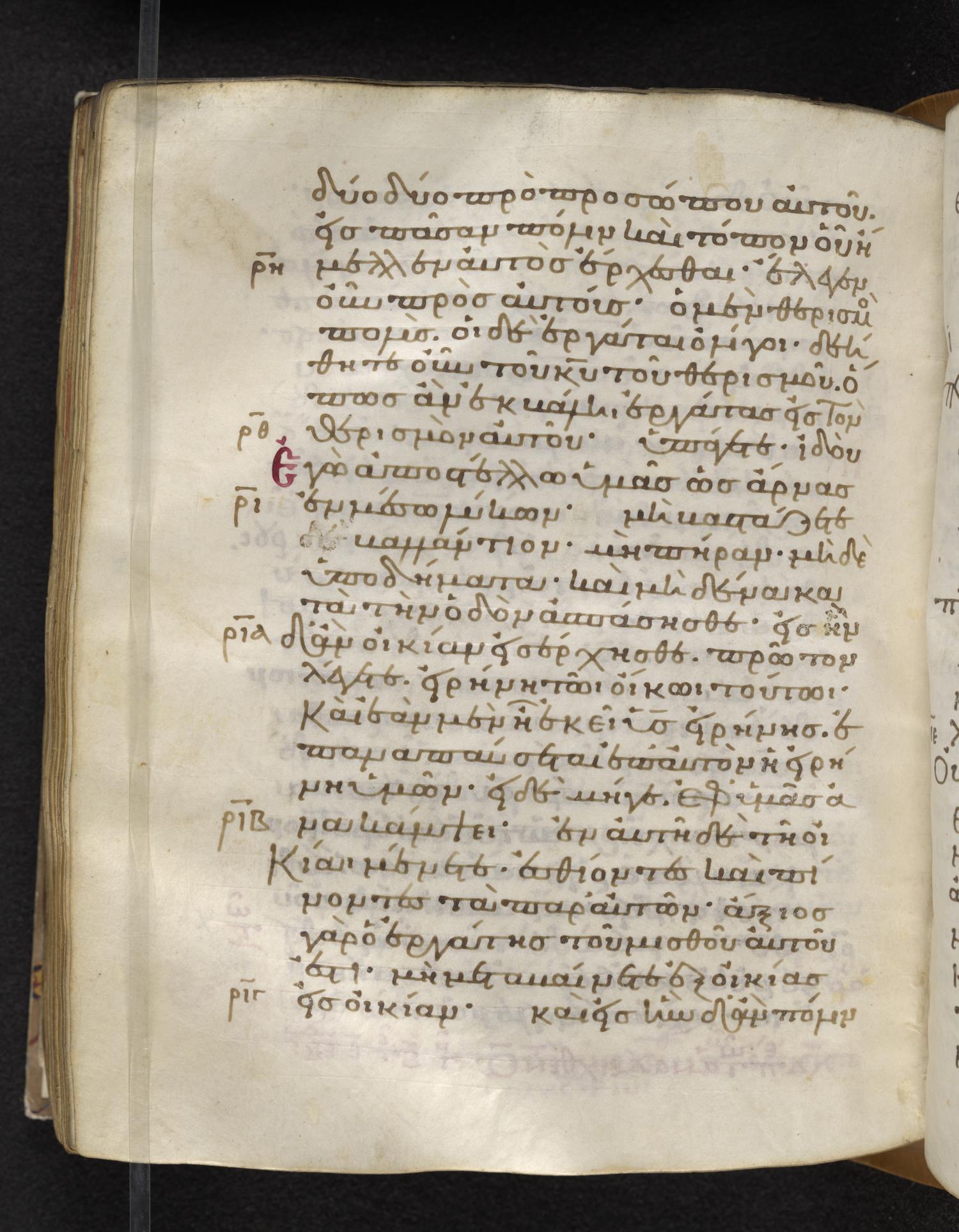 Eleventh-century minuscule of the Gospels on parchment; 310 leaves, 1 column, 22–24 lines per column. Images were taken at the Lambeth Palace Library.