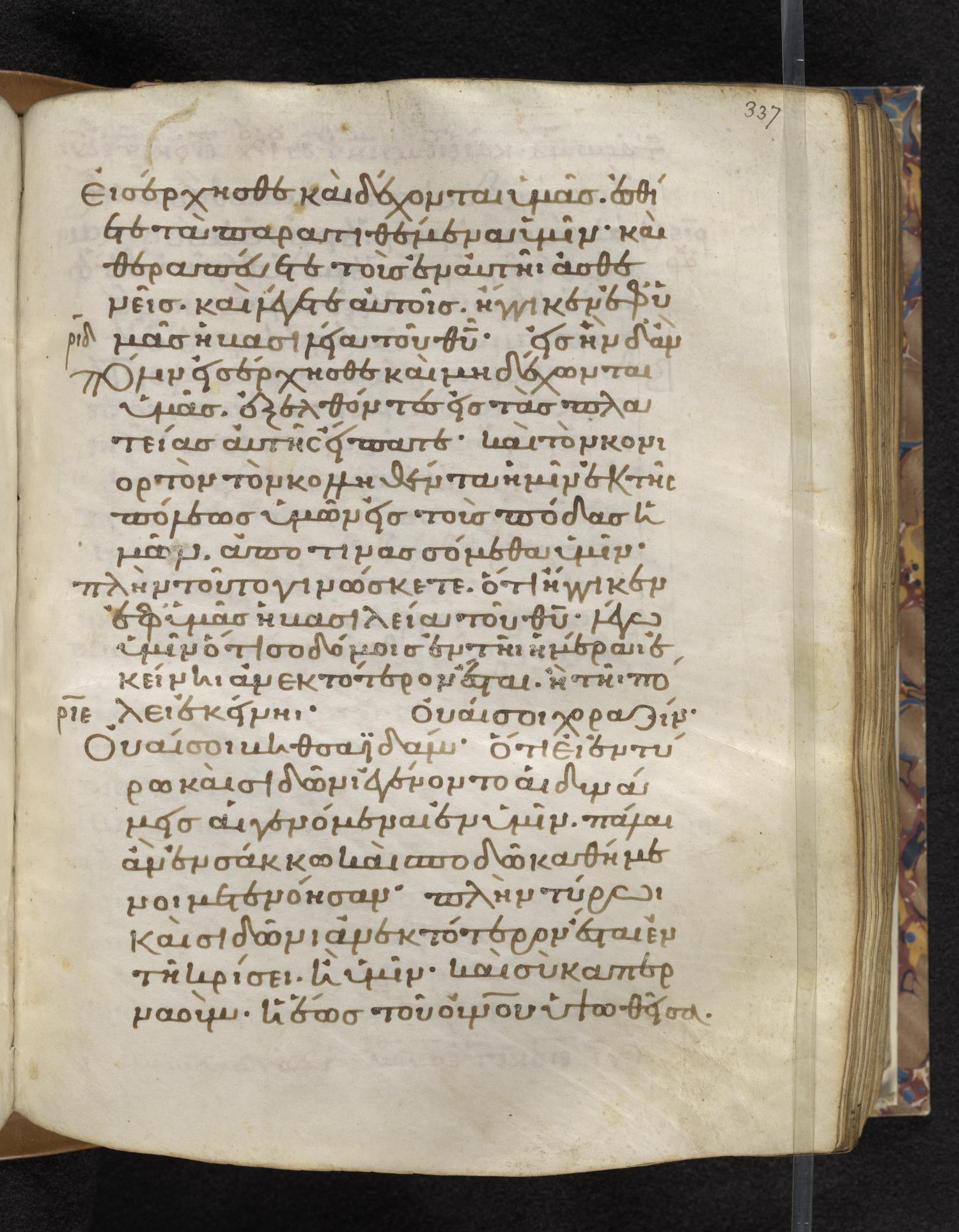 Eleventh-century minuscule of the Gospels on parchment; 310 leaves, 1 column, 22–24 lines per column. Images were taken at the Lambeth Palace Library.