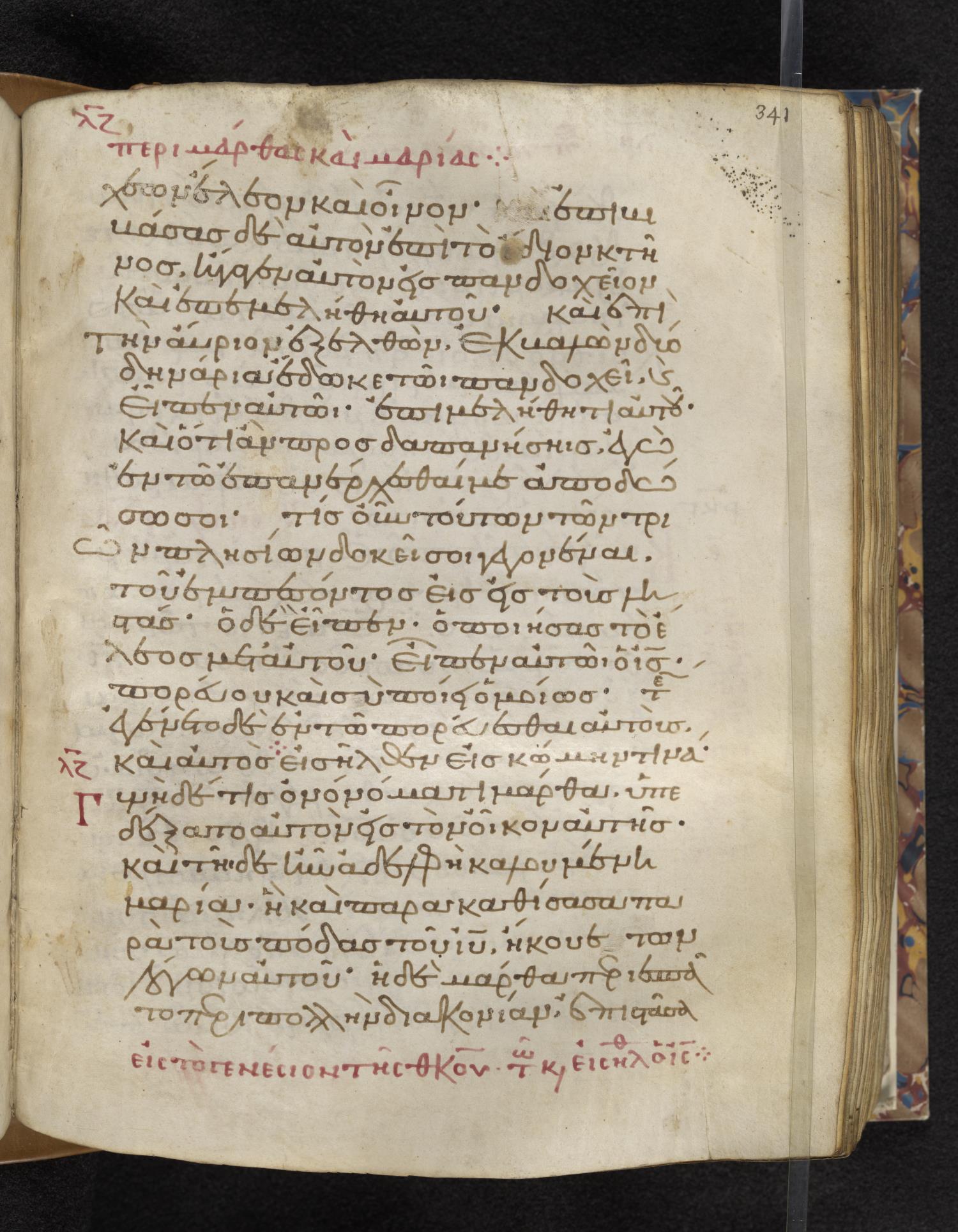 Eleventh-century minuscule of the Gospels on parchment; 310 leaves, 1 column, 22–24 lines per column. Images were taken at the Lambeth Palace Library.
