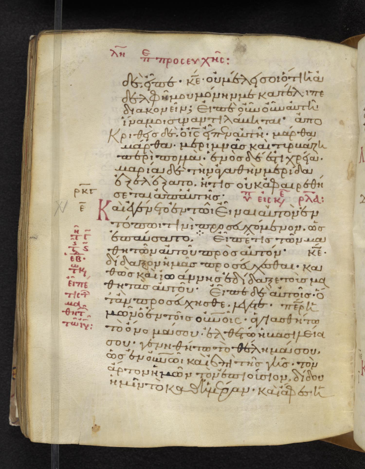 Eleventh-century minuscule of the Gospels on parchment; 310 leaves, 1 column, 22–24 lines per column. Images were taken at the Lambeth Palace Library.