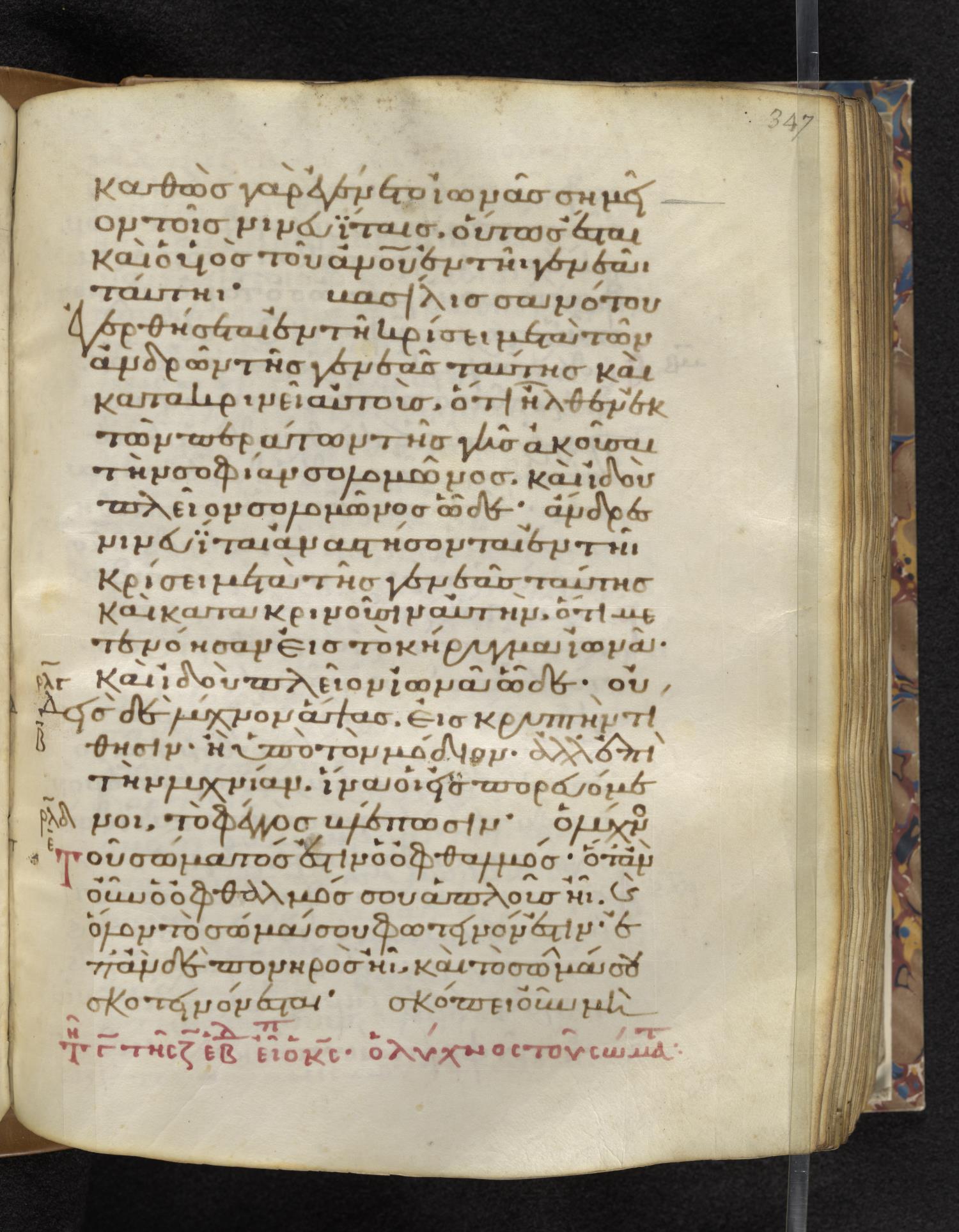 Eleventh-century minuscule of the Gospels on parchment; 310 leaves, 1 column, 22–24 lines per column. Images were taken at the Lambeth Palace Library.