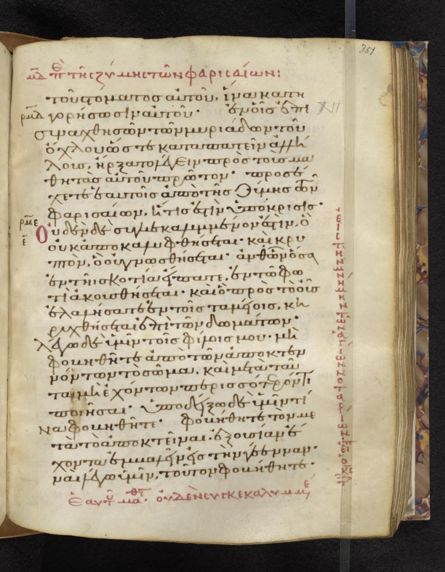 Eleventh-century minuscule of the Gospels on parchment; 310 leaves, 1 column, 22–24 lines per column. Images were taken at the Lambeth Palace Library.