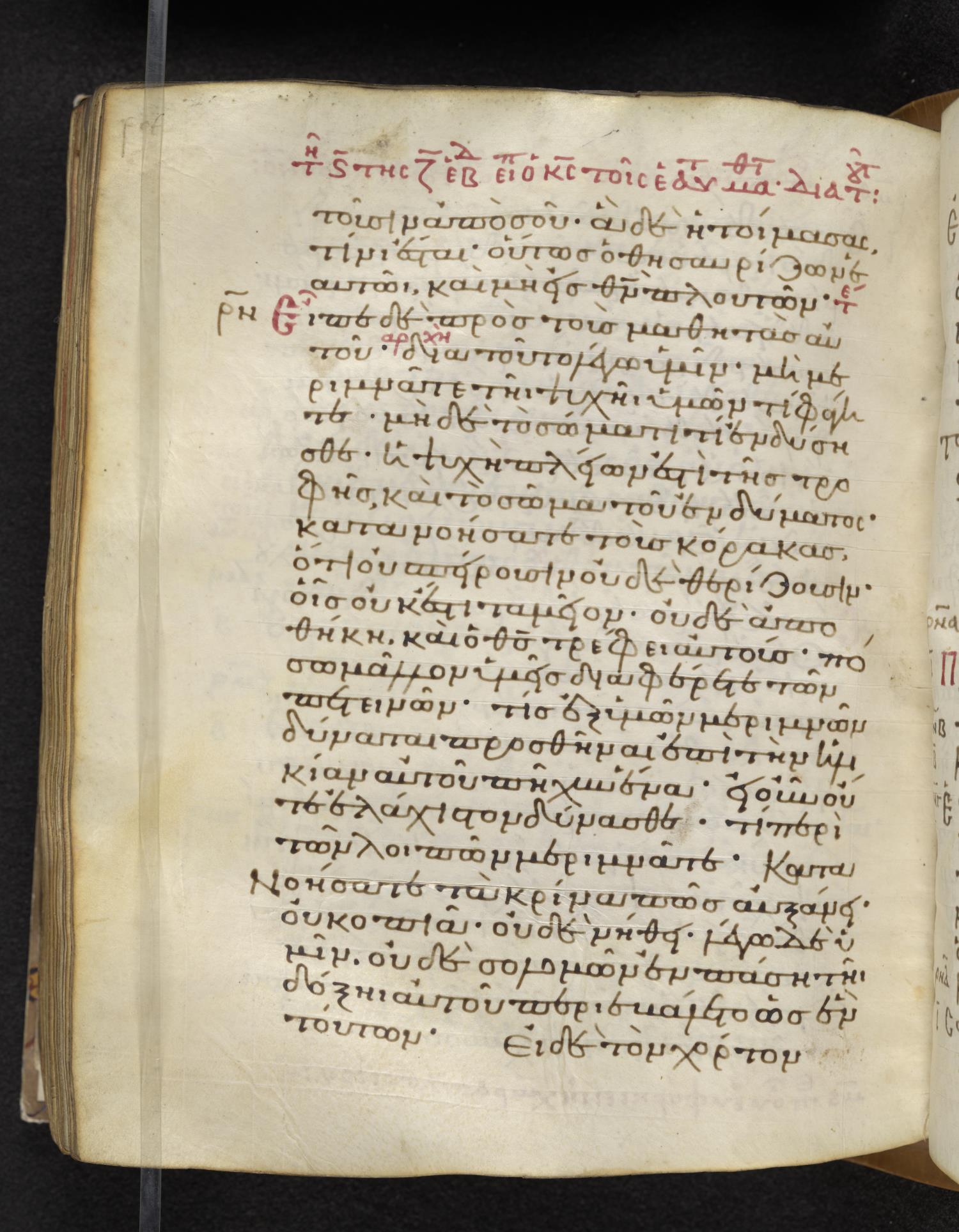 Eleventh-century minuscule of the Gospels on parchment; 310 leaves, 1 column, 22–24 lines per column. Images were taken at the Lambeth Palace Library.