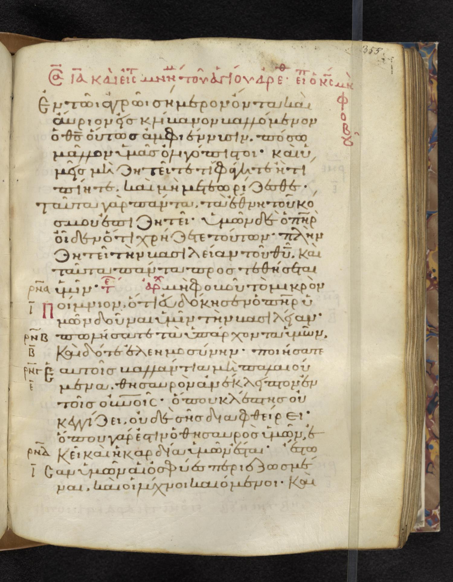 Eleventh-century minuscule of the Gospels on parchment; 310 leaves, 1 column, 22–24 lines per column. Images were taken at the Lambeth Palace Library.