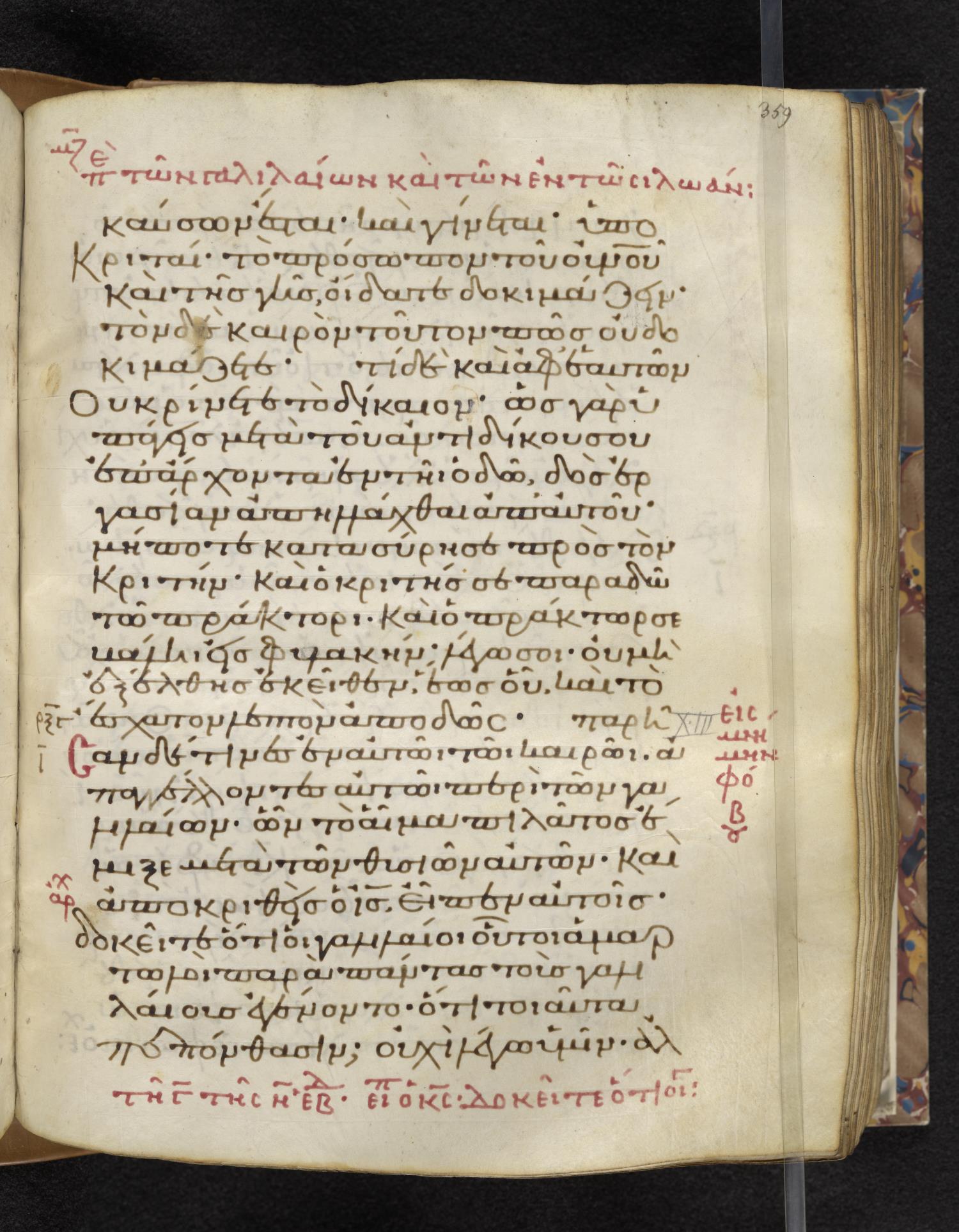 Eleventh-century minuscule of the Gospels on parchment; 310 leaves, 1 column, 22–24 lines per column. Images were taken at the Lambeth Palace Library.