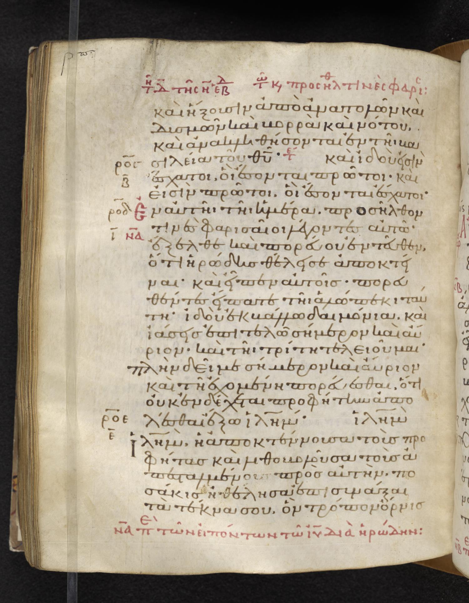 Eleventh-century minuscule of the Gospels on parchment; 310 leaves, 1 column, 22–24 lines per column. Images were taken at the Lambeth Palace Library.