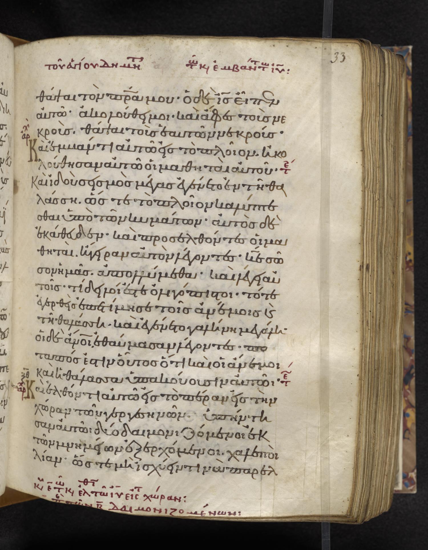 Eleventh-century minuscule of the Gospels on parchment; 310 leaves, 1 column, 22–24 lines per column. Images were taken at the Lambeth Palace Library.