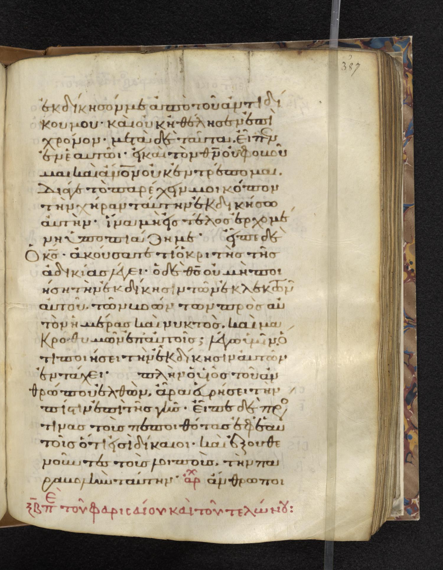 Eleventh-century minuscule of the Gospels on parchment; 310 leaves, 1 column, 22–24 lines per column. Images were taken at the Lambeth Palace Library.