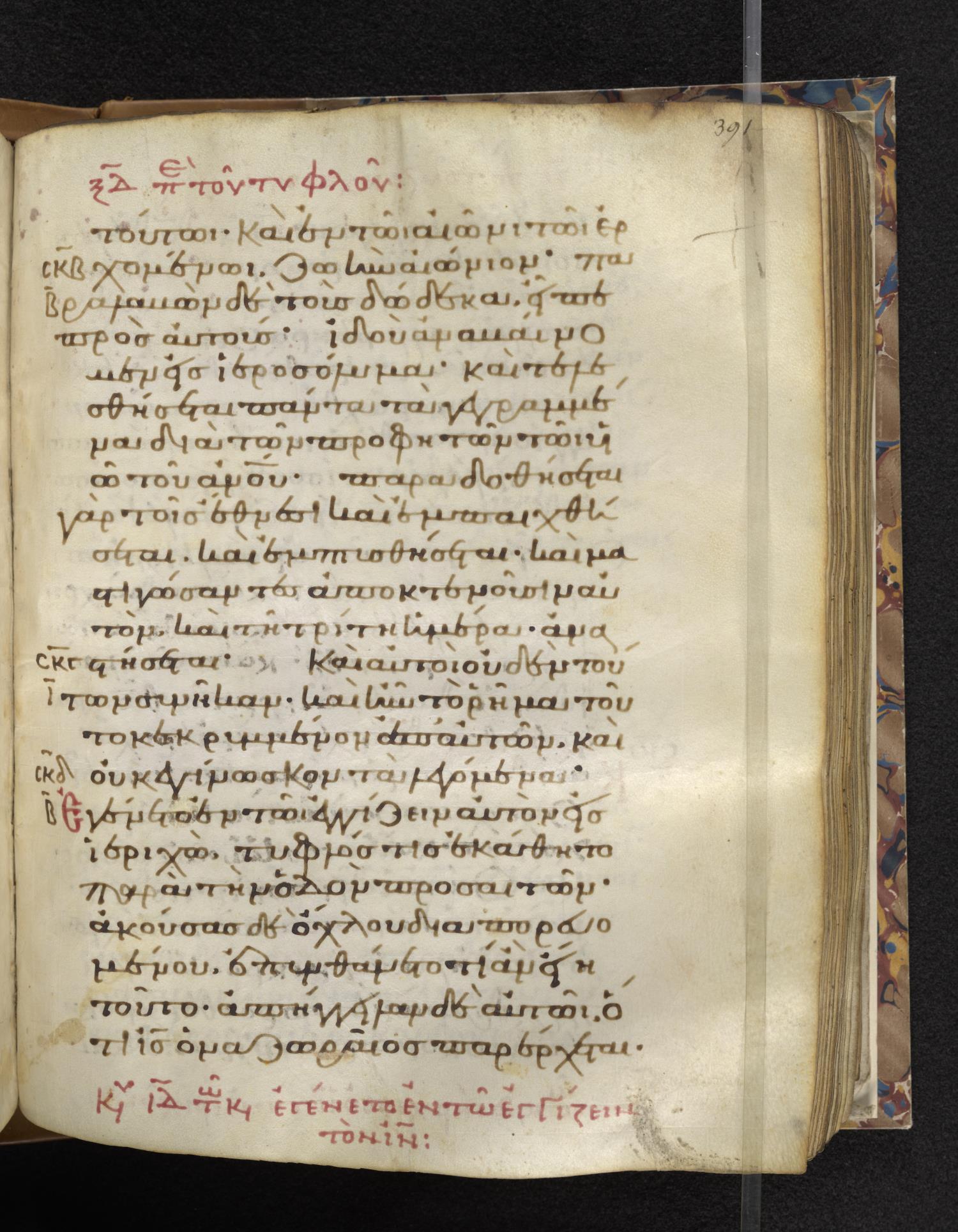 Eleventh-century minuscule of the Gospels on parchment; 310 leaves, 1 column, 22–24 lines per column. Images were taken at the Lambeth Palace Library.