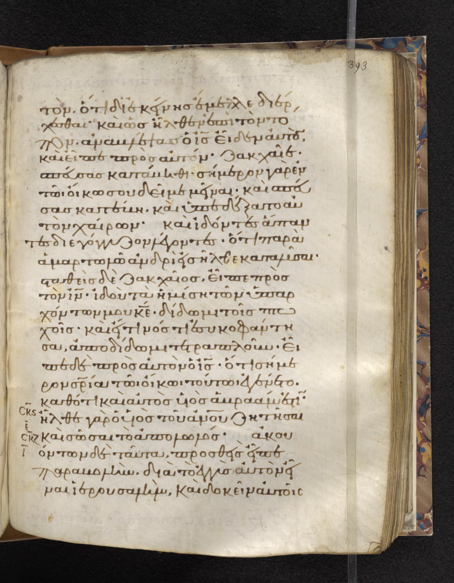 Eleventh-century minuscule of the Gospels on parchment; 310 leaves, 1 column, 22–24 lines per column. Images were taken at the Lambeth Palace Library.