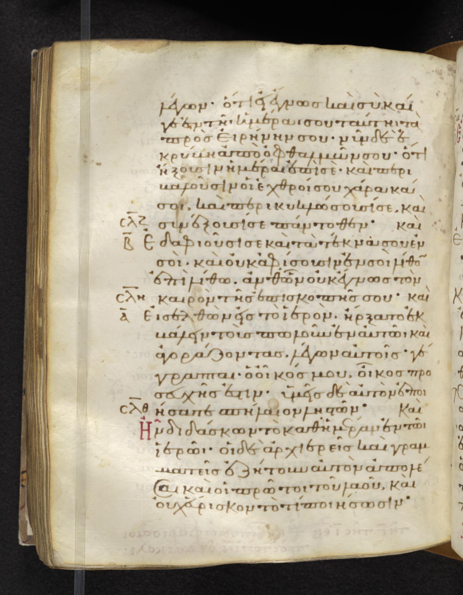 Eleventh-century minuscule of the Gospels on parchment; 310 leaves, 1 column, 22–24 lines per column. Images were taken at the Lambeth Palace Library.