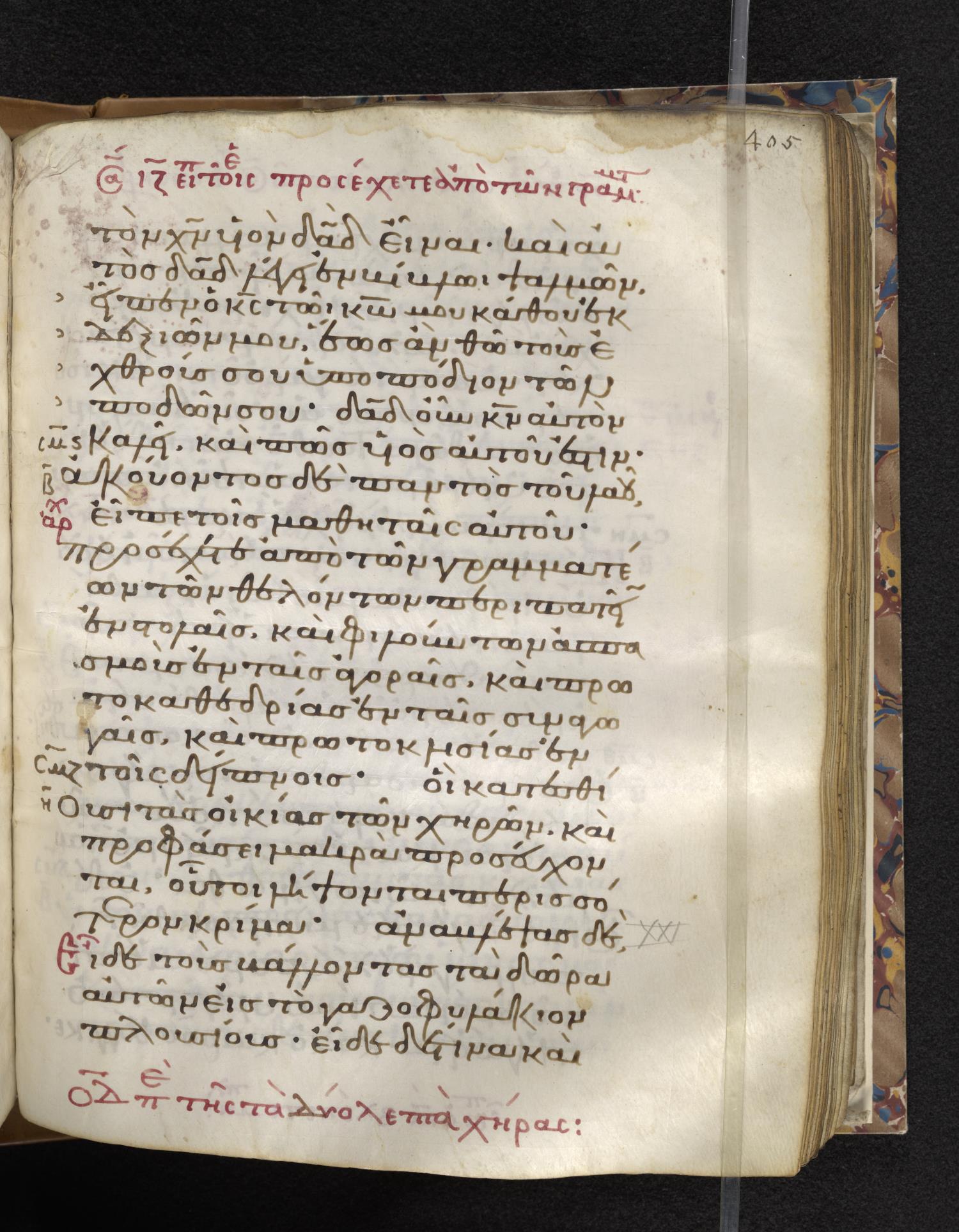 Eleventh-century minuscule of the Gospels on parchment; 310 leaves, 1 column, 22–24 lines per column. Images were taken at the Lambeth Palace Library.