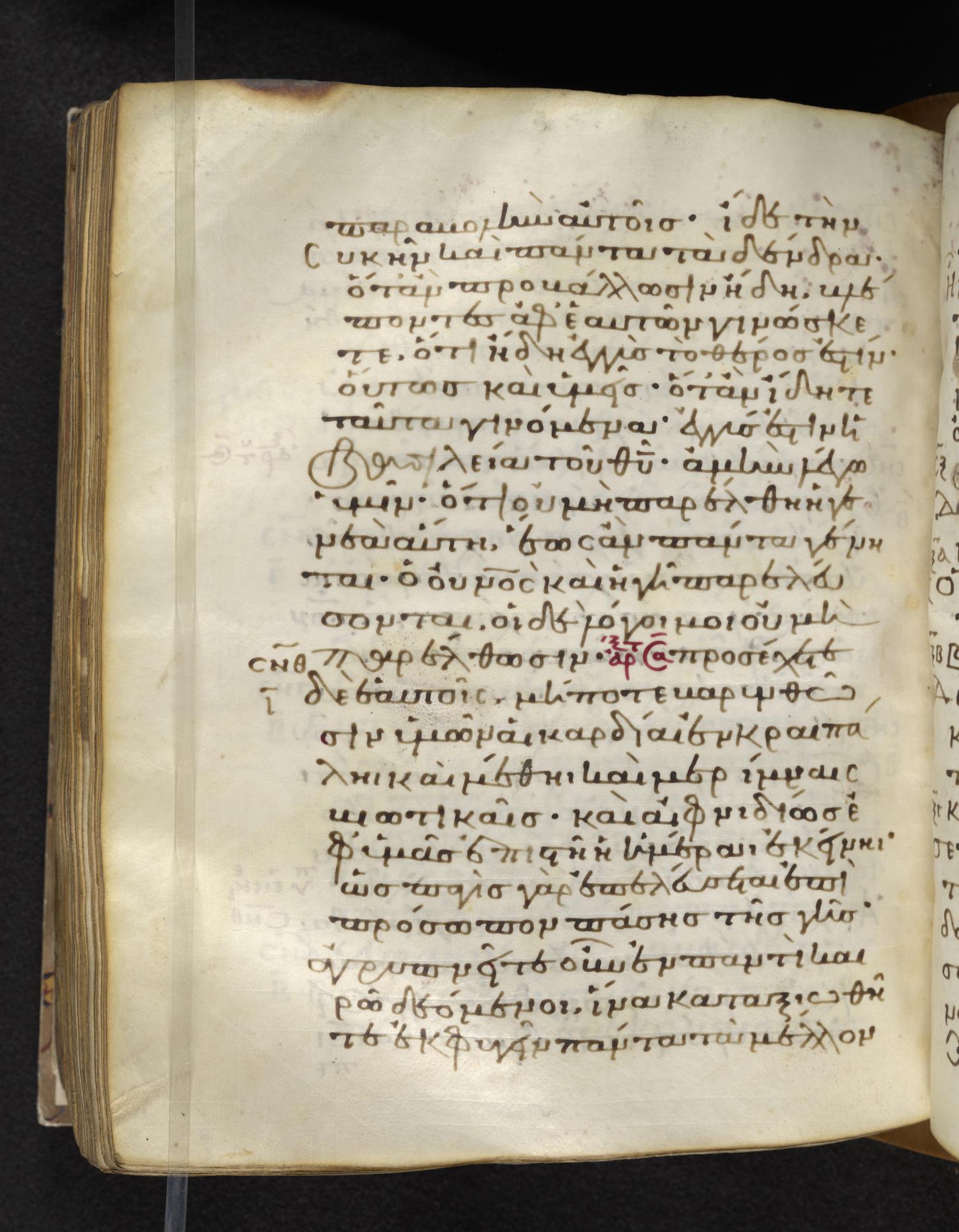 Eleventh-century minuscule of the Gospels on parchment; 310 leaves, 1 column, 22–24 lines per column. Images were taken at the Lambeth Palace Library.
