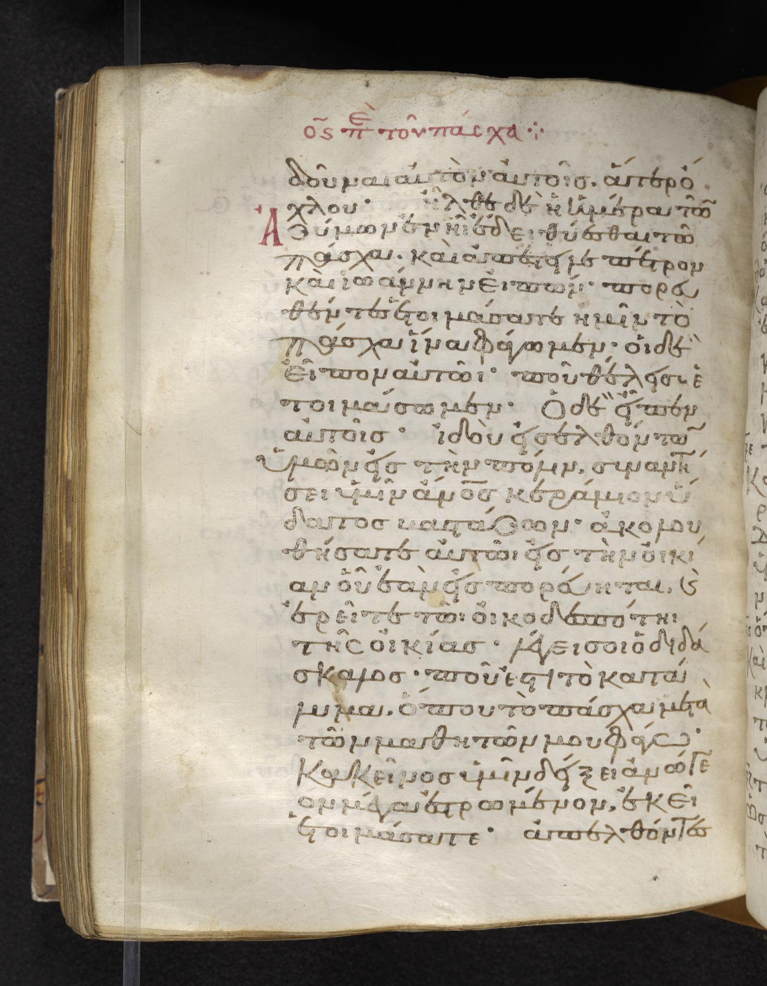 Eleventh-century minuscule of the Gospels on parchment; 310 leaves, 1 column, 22–24 lines per column. Images were taken at the Lambeth Palace Library.