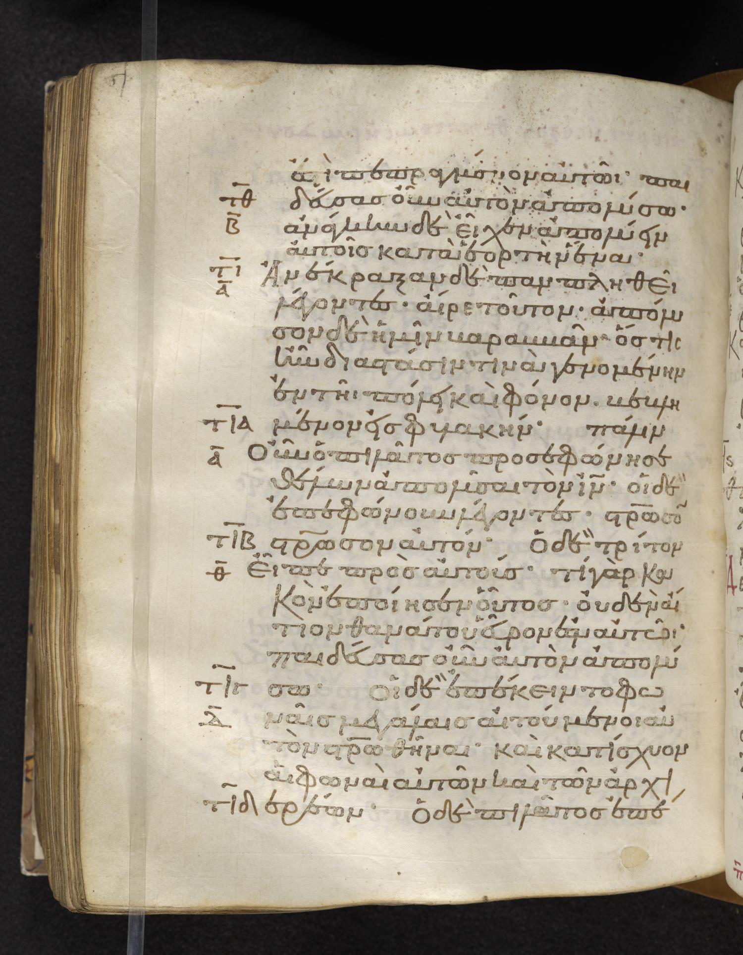 Eleventh-century minuscule of the Gospels on parchment; 310 leaves, 1 column, 22–24 lines per column. Images were taken at the Lambeth Palace Library.