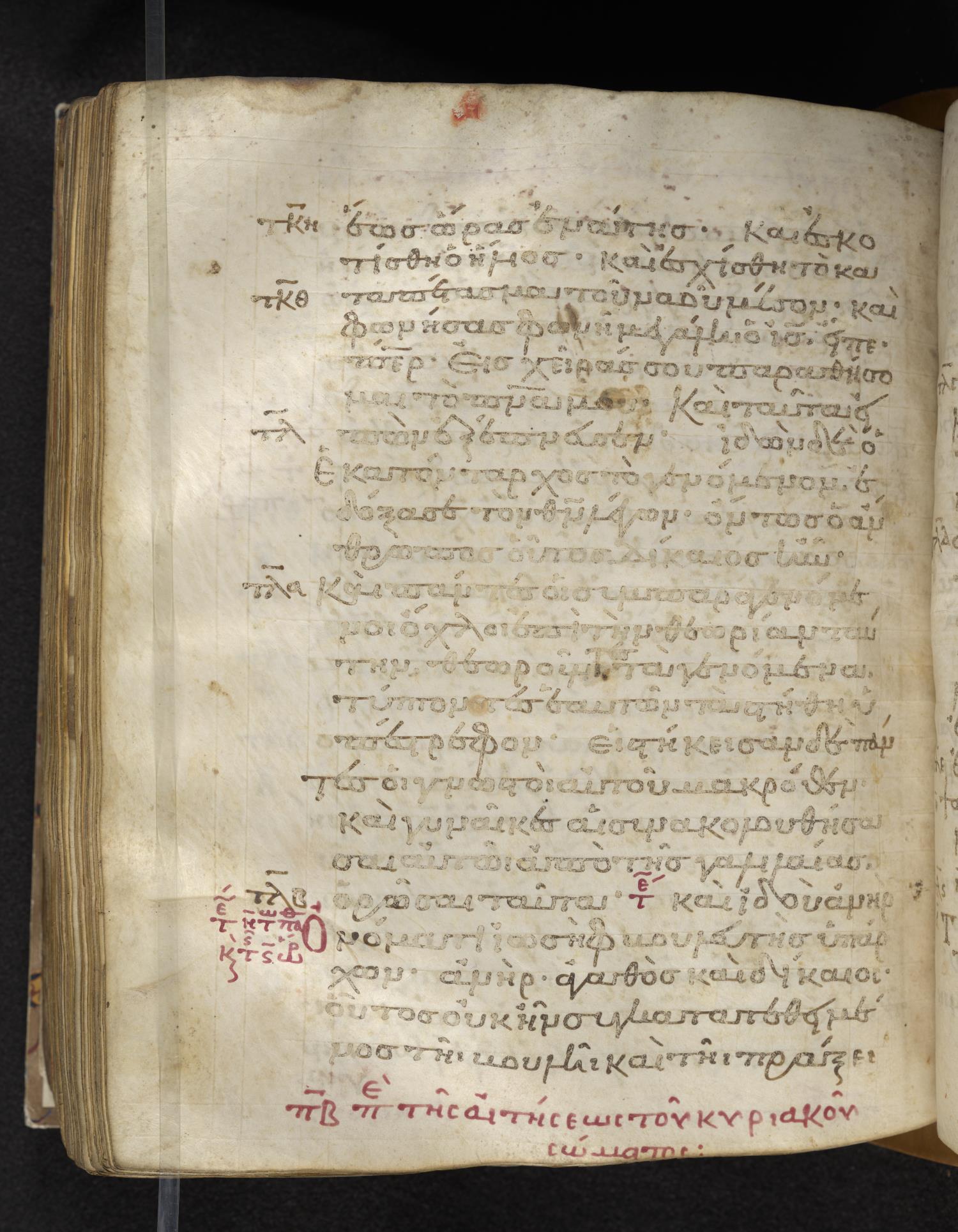 Eleventh-century minuscule of the Gospels on parchment; 310 leaves, 1 column, 22–24 lines per column. Images were taken at the Lambeth Palace Library.